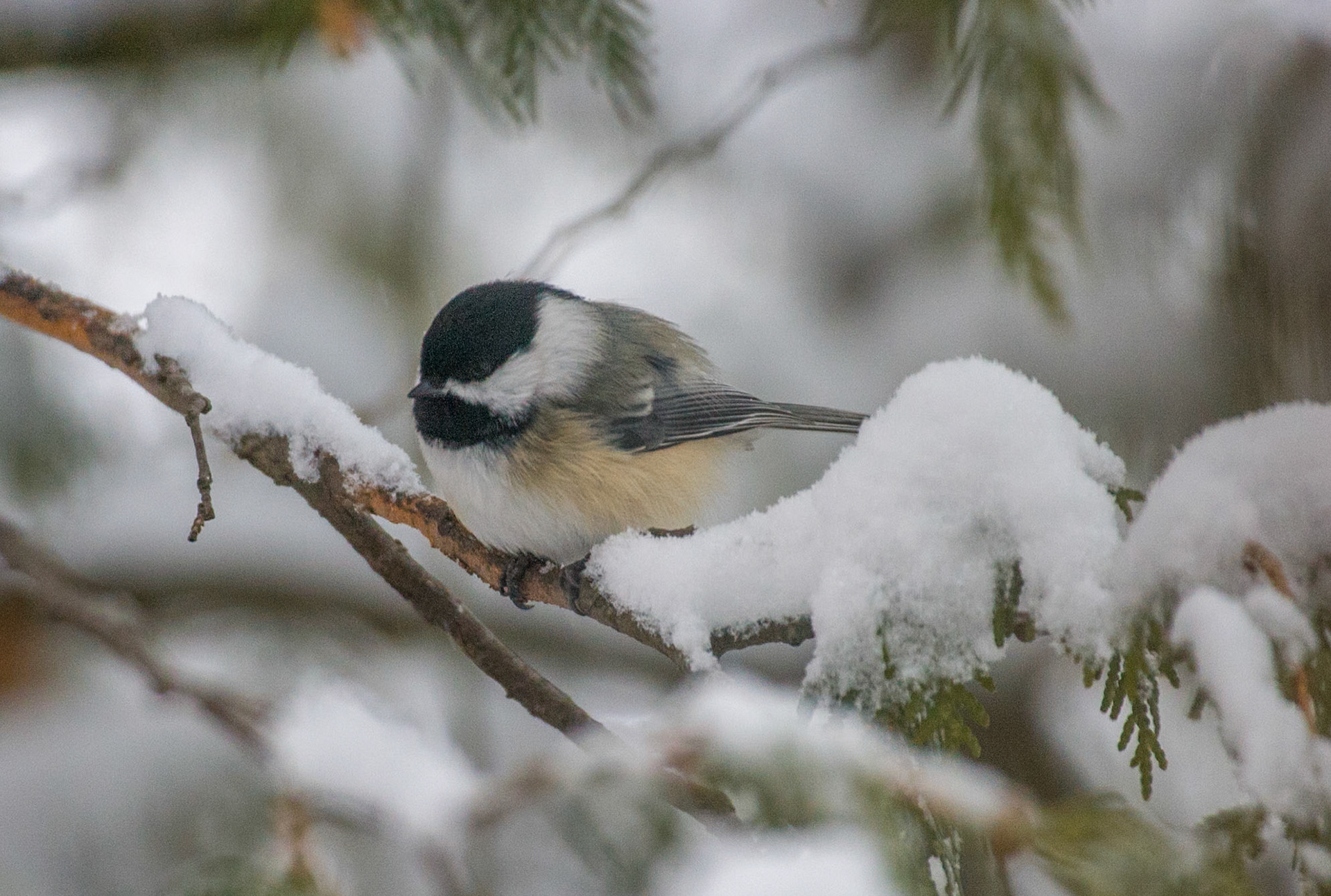 February 23 - Chickadee in the WoodsA tiny chickadee sings its familiar song amidst the northern woods.Chickadees are tough little birds that do not migrate. However, during cold weather, Chickadees need twenty times more food than in summer.Look at the birds of the air; they do not sow or reap or store away in barns, and yet your heavenly Father feeds them. Are you not much more valuable than they? Matthew 6:26The wonders of God's creation declare the glory of God.