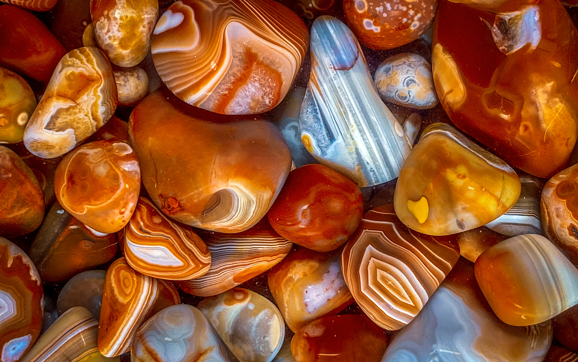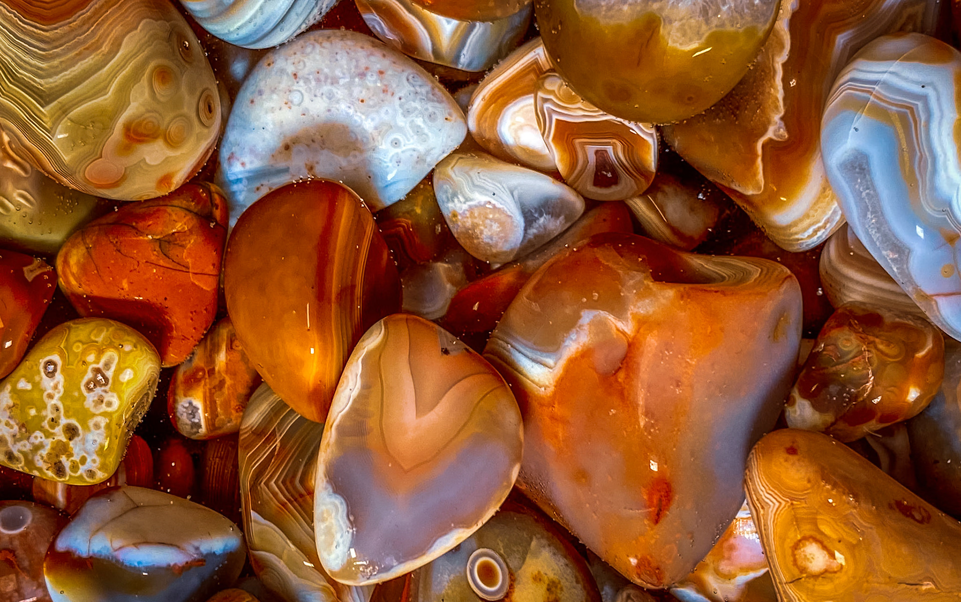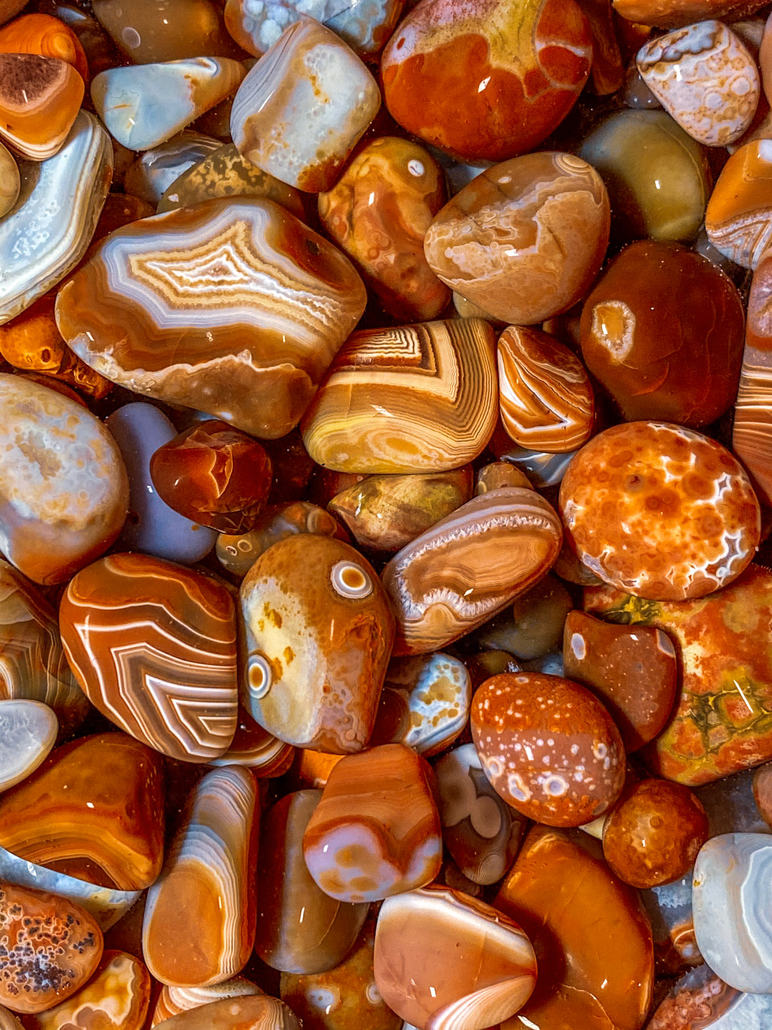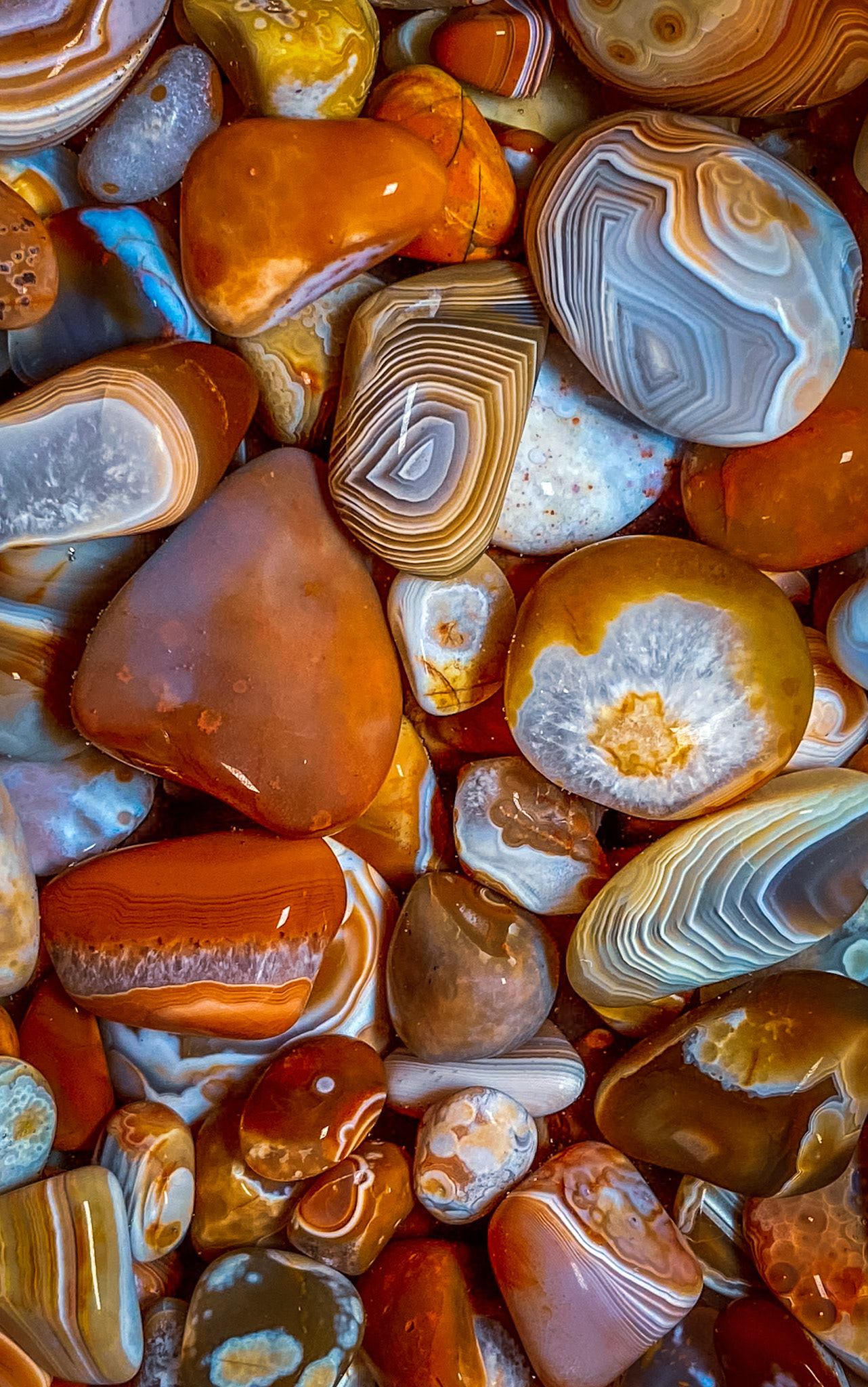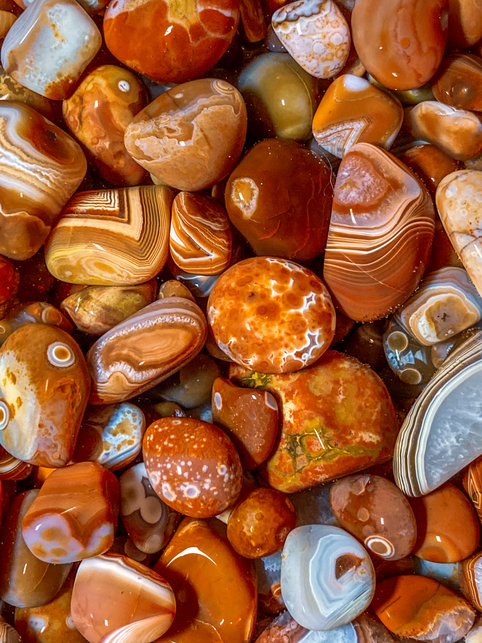 January 27 – Lake Superior Agates - Gems of the NorthThese polished Lake Superior agates began as rough, unremarkable stones before spending two months in a rock tumbler. Through the harsh, repetitive action of tumbling across progressively finer grits, their hidden beauty slowly revealed itself.Designated the Minnesota State Gemstone in 1969, Lake Superior agates are prized worldwide for their durability, color, and distinctive banding. Carried and scattered by ancient glaciers, these agates form with warm reds, oranges, and browns as iron minerals oxidize—an iron-rich chemistry that gives them their signature fire.When fully polished, agates develop a glassy, almost glowing surface that brings their internal bands to life. They are valued not only for how they appear in the wild, but for the beauty revealed through patience and refinement.“The foundations of the wall of the city were adorned with every kind of jewel. The first was jasper, the second sapphire, the third agate…” — Revelation 21:19Much like the agate, the hard tumbles of life have a way of revealing a beauty meant to endure.