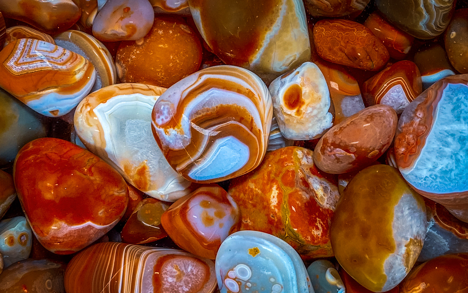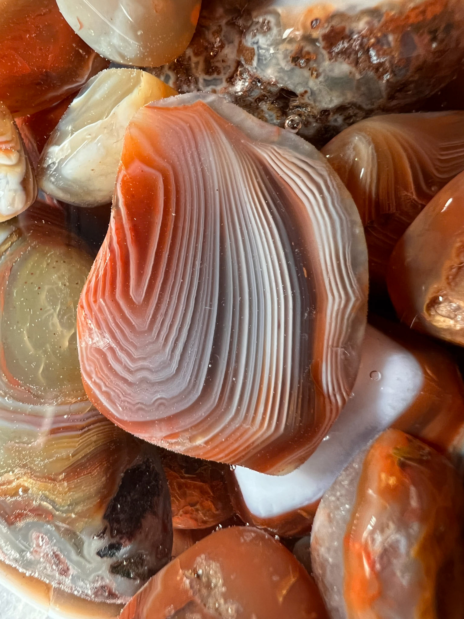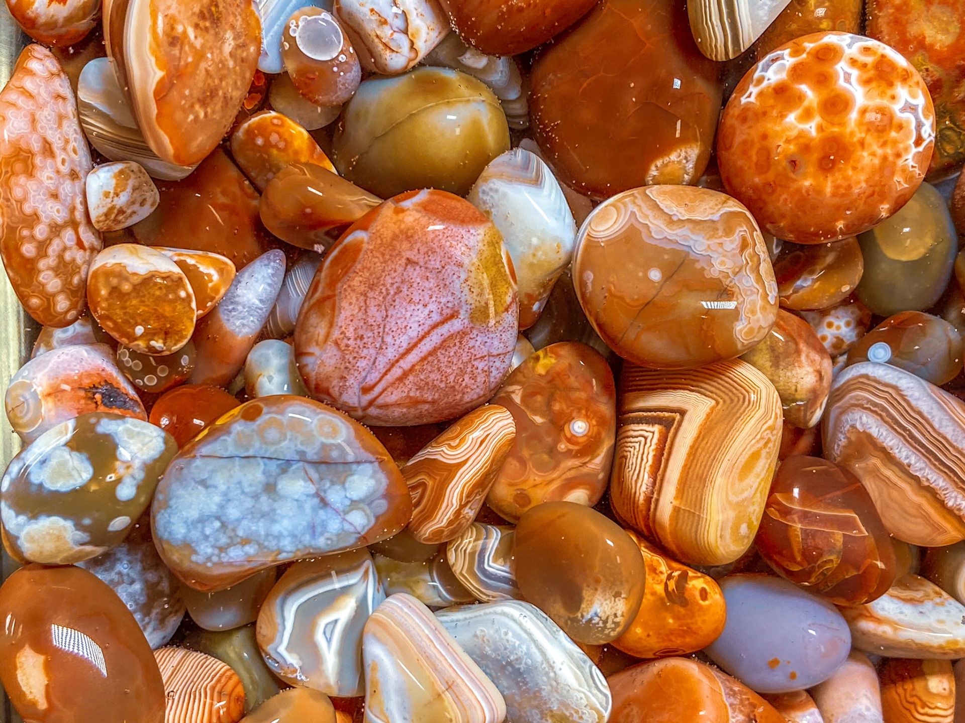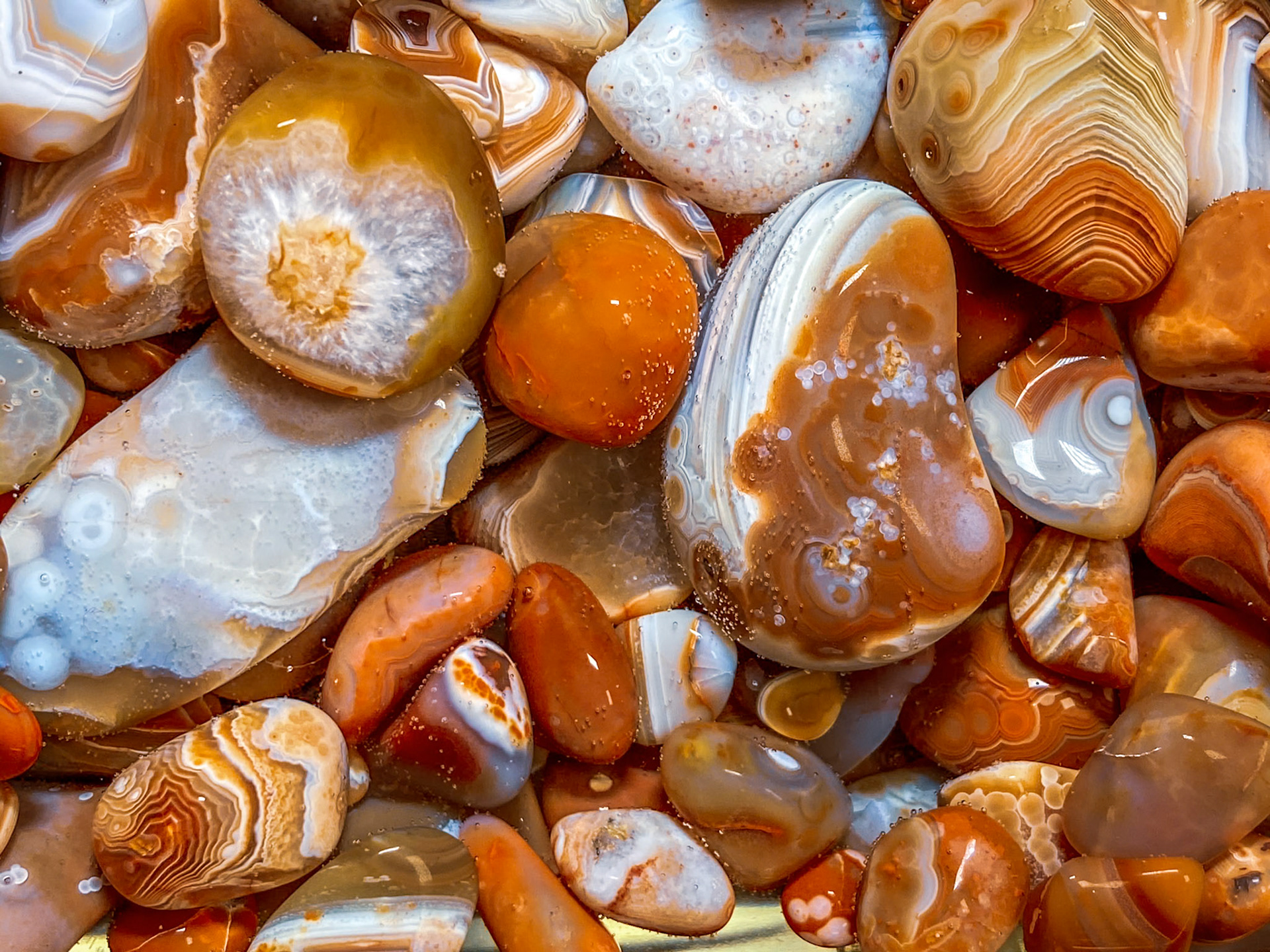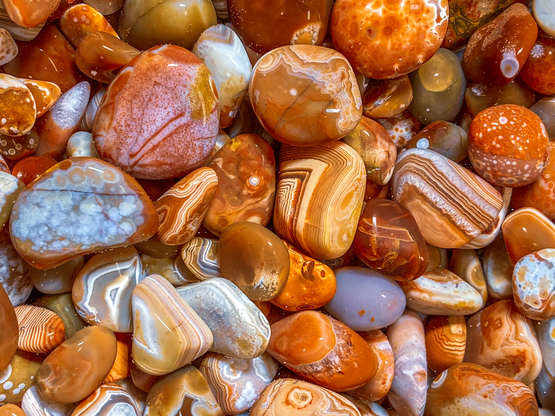 January 27 – Lake Superior Agates - Gems of the NorthThese polished Lake Superior agates began as rough, unremarkable stones before spending two months in a rock tumbler. Through the harsh, repetitive action of tumbling across progressively finer grits, their hidden beauty slowly revealed itself.Designated the Minnesota State Gemstone in 1969, Lake Superior agates are prized worldwide for their durability, color, and distinctive banding. Carried and scattered by ancient glaciers, these agates form with warm reds, oranges, and browns as iron minerals oxidize—an iron-rich chemistry that gives them their signature fire.When fully polished, agates develop a glassy, almost glowing surface that brings their internal bands to life. They are valued not only for how they appear in the wild, but for the beauty revealed through patience and refinement.“The foundations of the wall of the city were adorned with every kind of jewel. The first was jasper, the second sapphire, the third agate…” — Revelation 21:19Much like the agate, the hard tumbles of life have a way of revealing a beauty meant to endure.