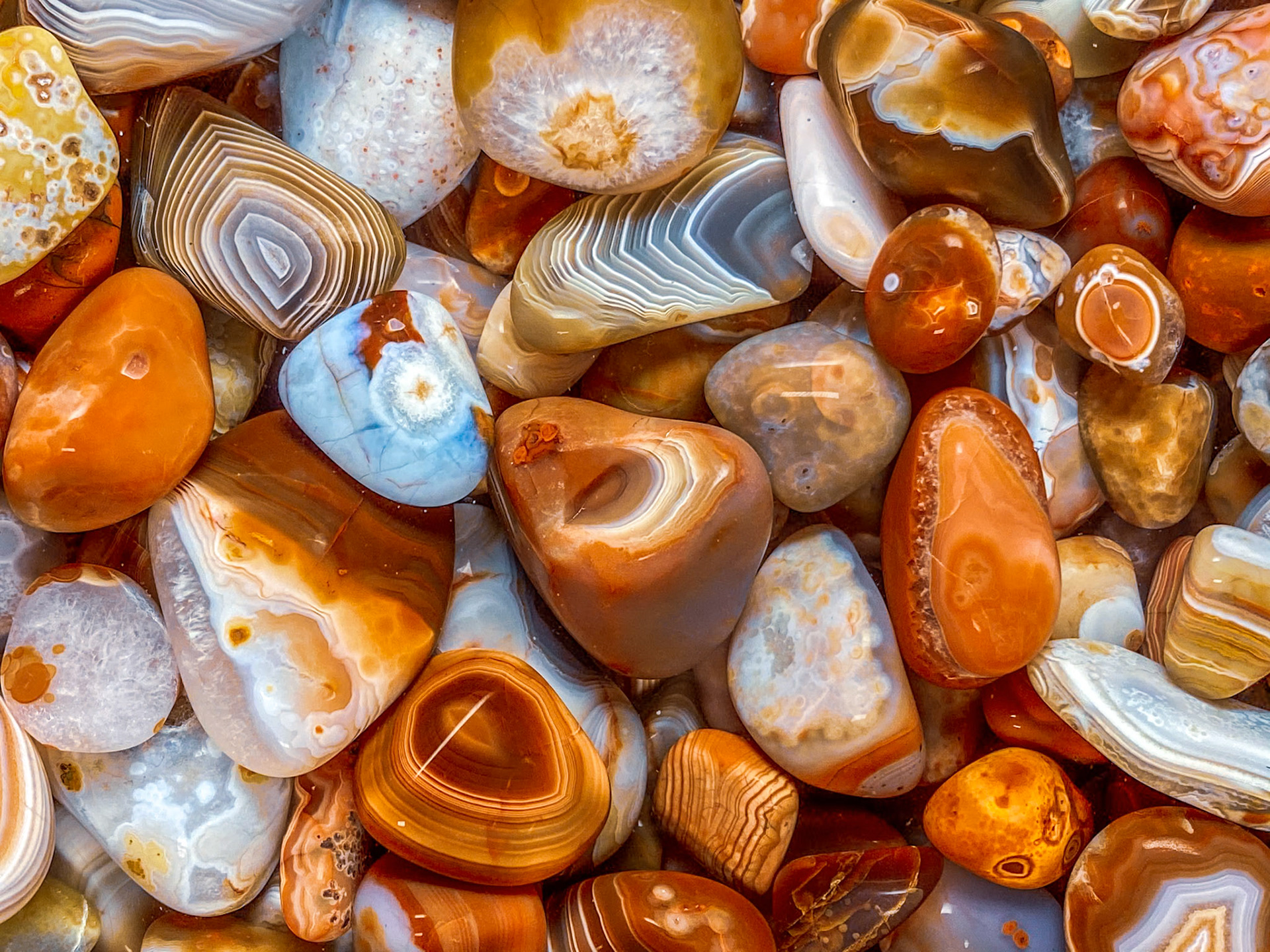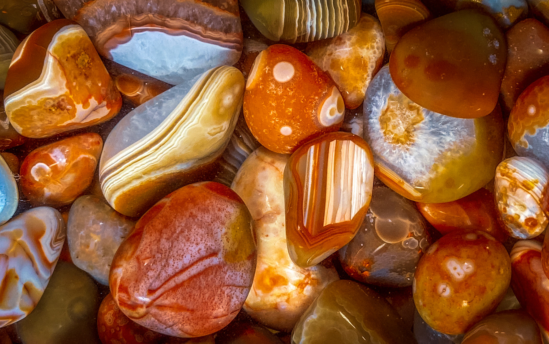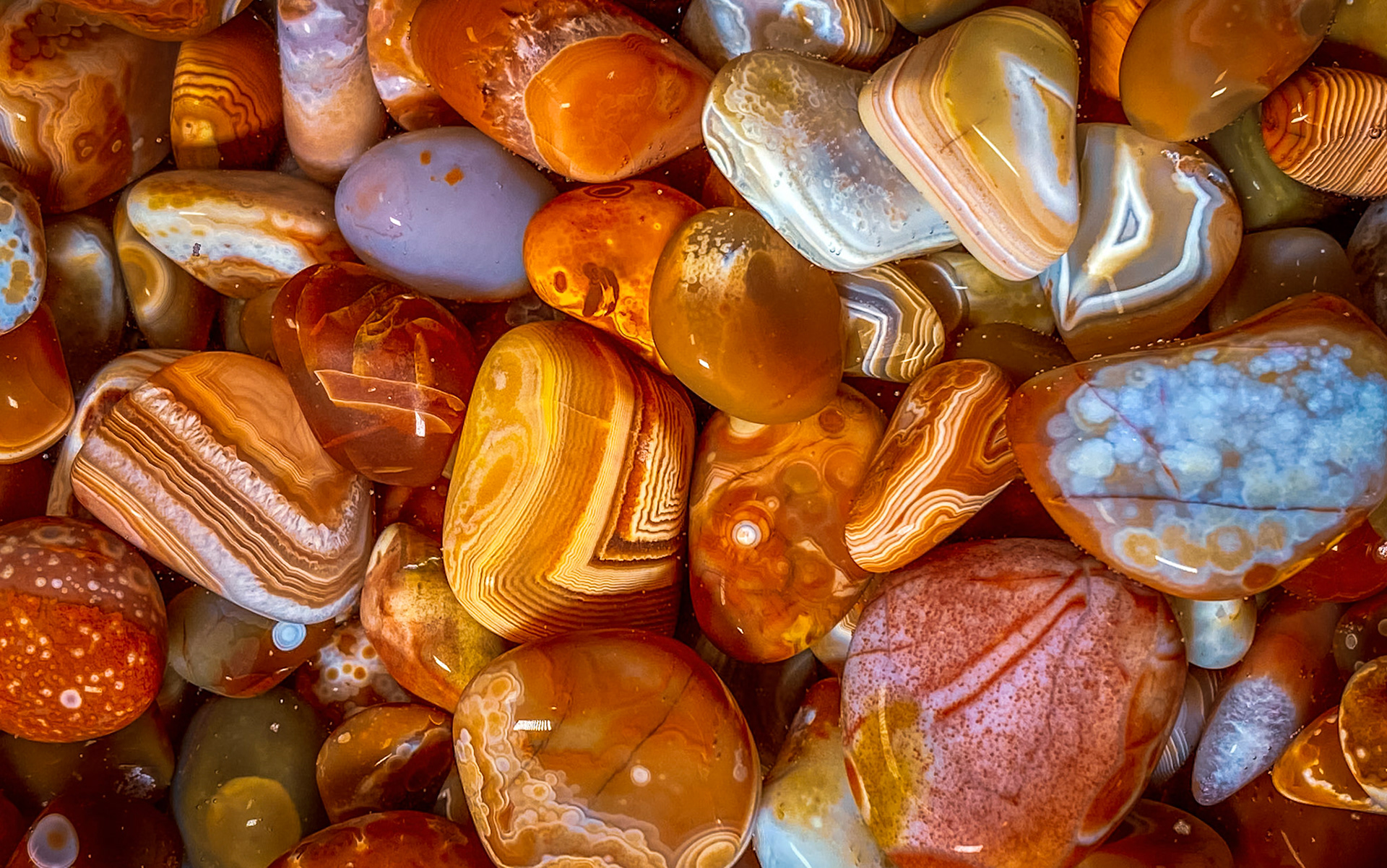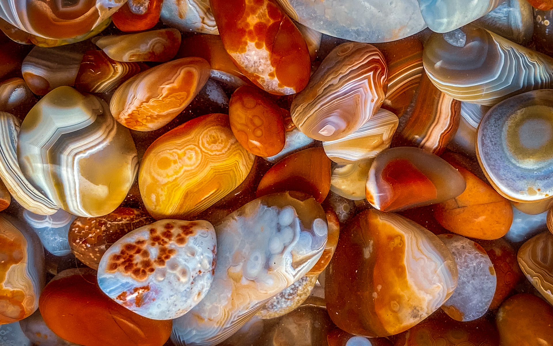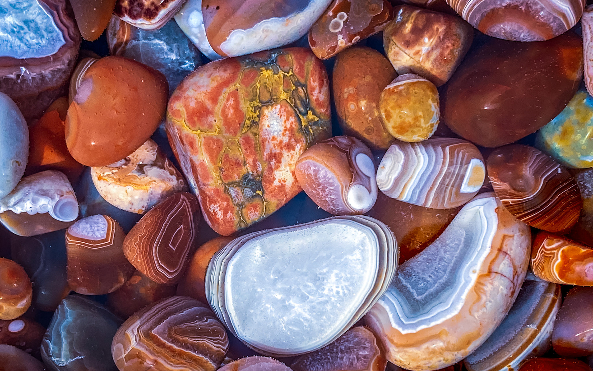 January 27 – Lake Superior Agates - Gems of the NorthThese polished Lake Superior agates began as rough, unremarkable stones before spending two months in a rock tumbler. Through the harsh, repetitive action of tumbling across progressively finer grits, their hidden beauty slowly revealed itself.Designated the Minnesota State Gemstone in 1969, Lake Superior agates are prized worldwide for their durability, color, and distinctive banding. Carried and scattered by ancient glaciers, these agates form with warm reds, oranges, and browns as iron minerals oxidize—an iron-rich chemistry that gives them their signature fire.When fully polished, agates develop a glassy, almost glowing surface that brings their internal bands to life. They are valued not only for how they appear in the wild, but for the beauty revealed through patience and refinement.“The foundations of the wall of the city were adorned with every kind of jewel. The first was jasper, the second sapphire, the third agate…” — Revelation 21:19Much like the agate, the hard tumbles of life have a way of revealing a beauty meant to endure.