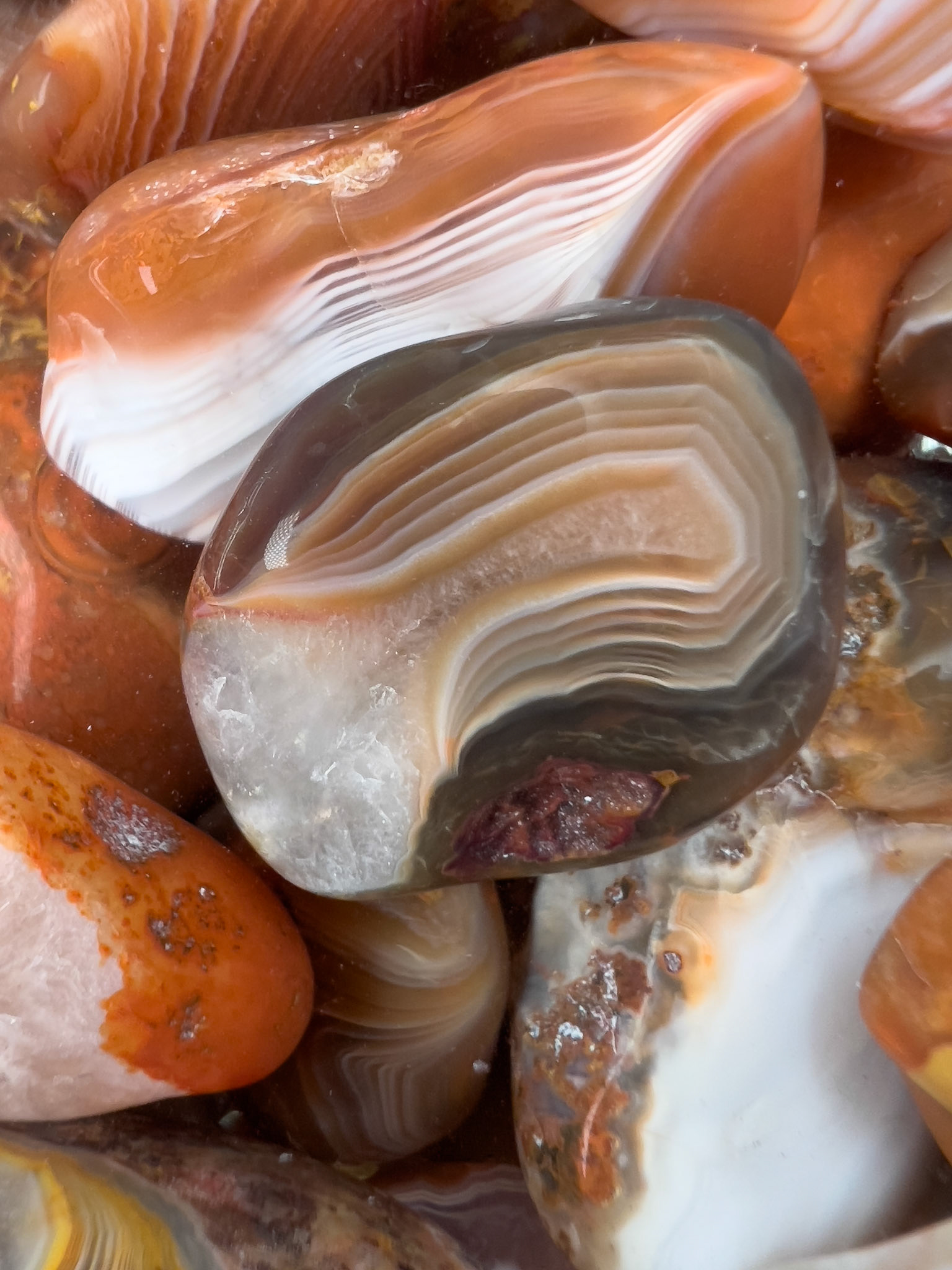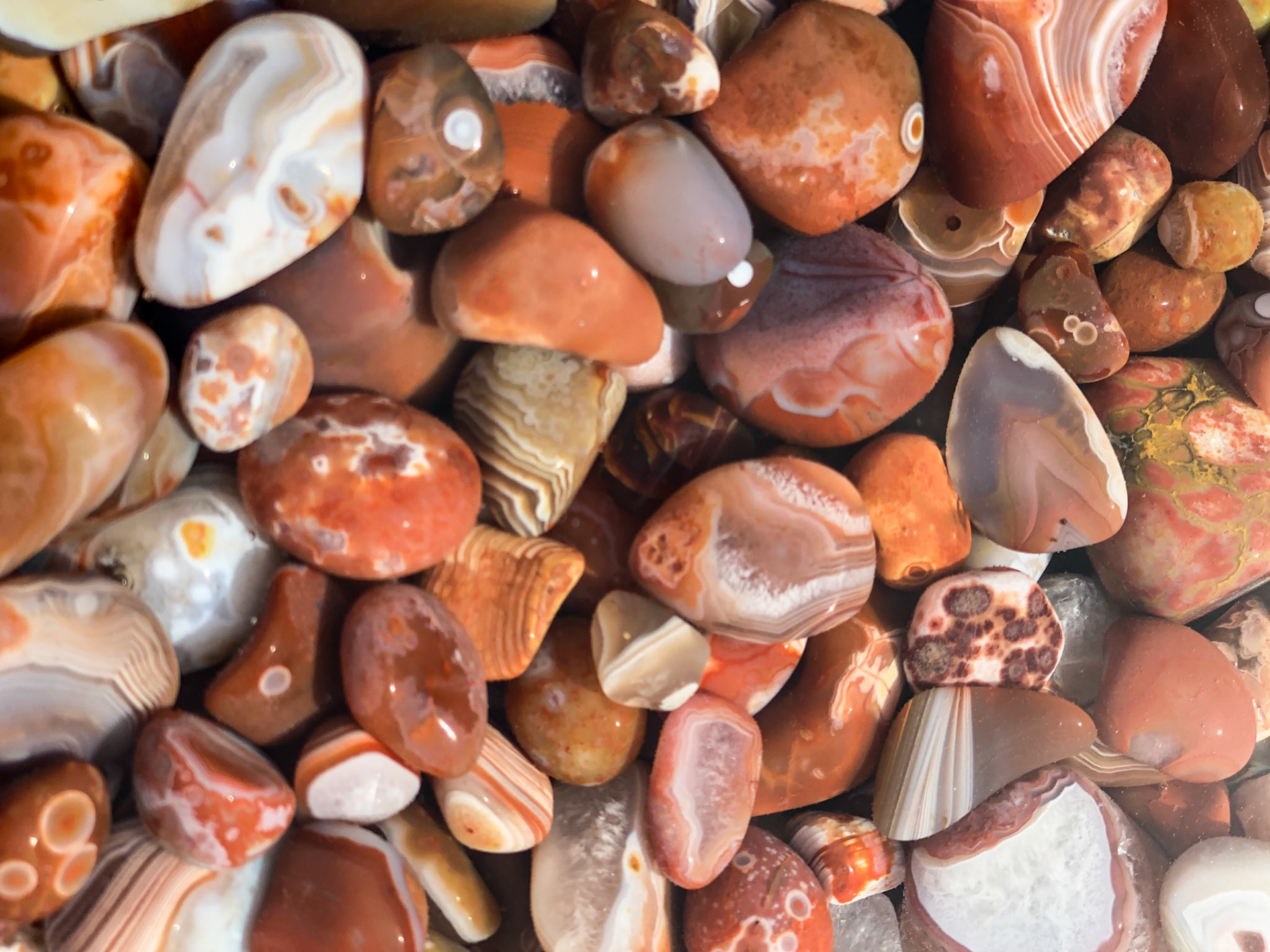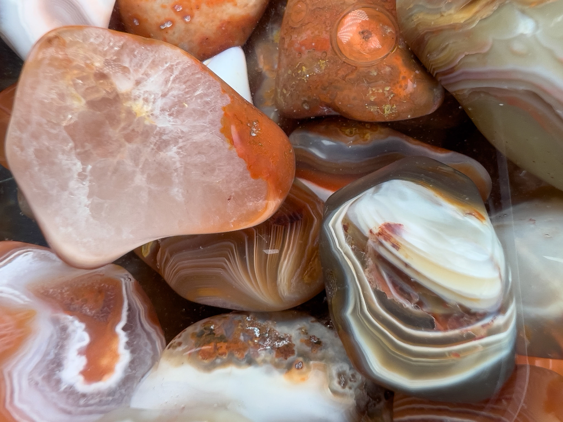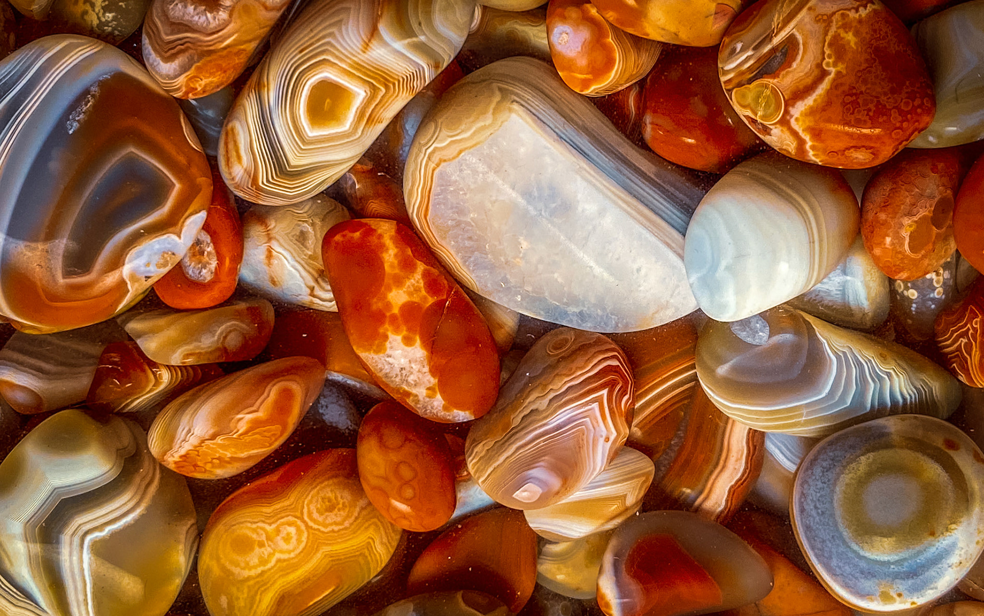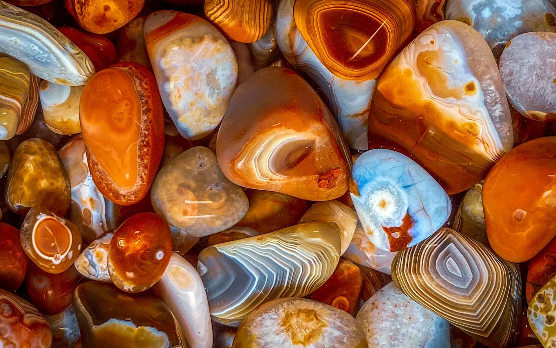 January 27 – Lake Superior Agates - Gems of the NorthThese polished Lake Superior agates began as rough, unremarkable stones before spending two months in a rock tumbler. Through the harsh, repetitive action of tumbling across progressively finer grits, their hidden beauty slowly revealed itself.Designated the Minnesota State Gemstone in 1969, Lake Superior agates are prized worldwide for their durability, color, and distinctive banding. Carried and scattered by ancient glaciers, these agates form with warm reds, oranges, and browns as iron minerals oxidize—an iron-rich chemistry that gives them their signature fire.When fully polished, agates develop a glassy, almost glowing surface that brings their internal bands to life. They are valued not only for how they appear in the wild, but for the beauty revealed through patience and refinement.“The foundations of the wall of the city were adorned with every kind of jewel. The first was jasper, the second sapphire, the third agate…” — Revelation 21:19Much like the agate, the hard tumbles of life have a way of revealing a beauty meant to endure.