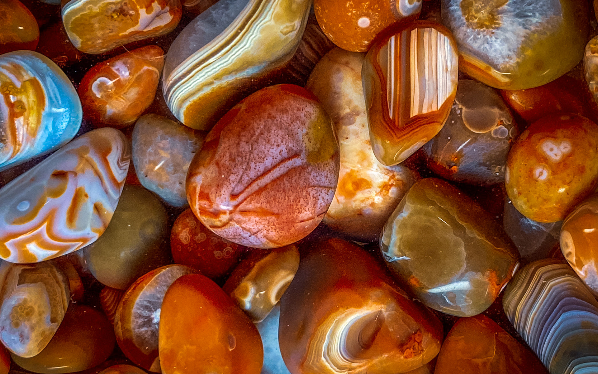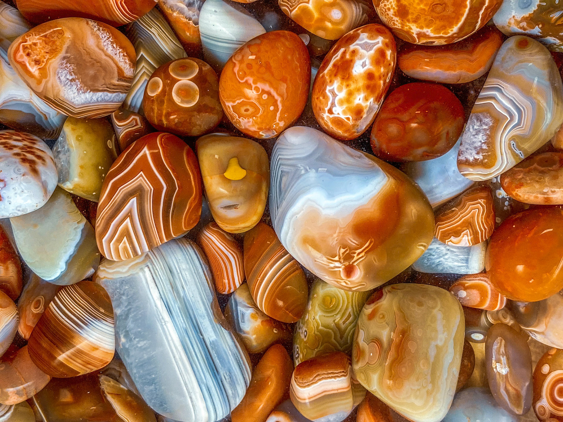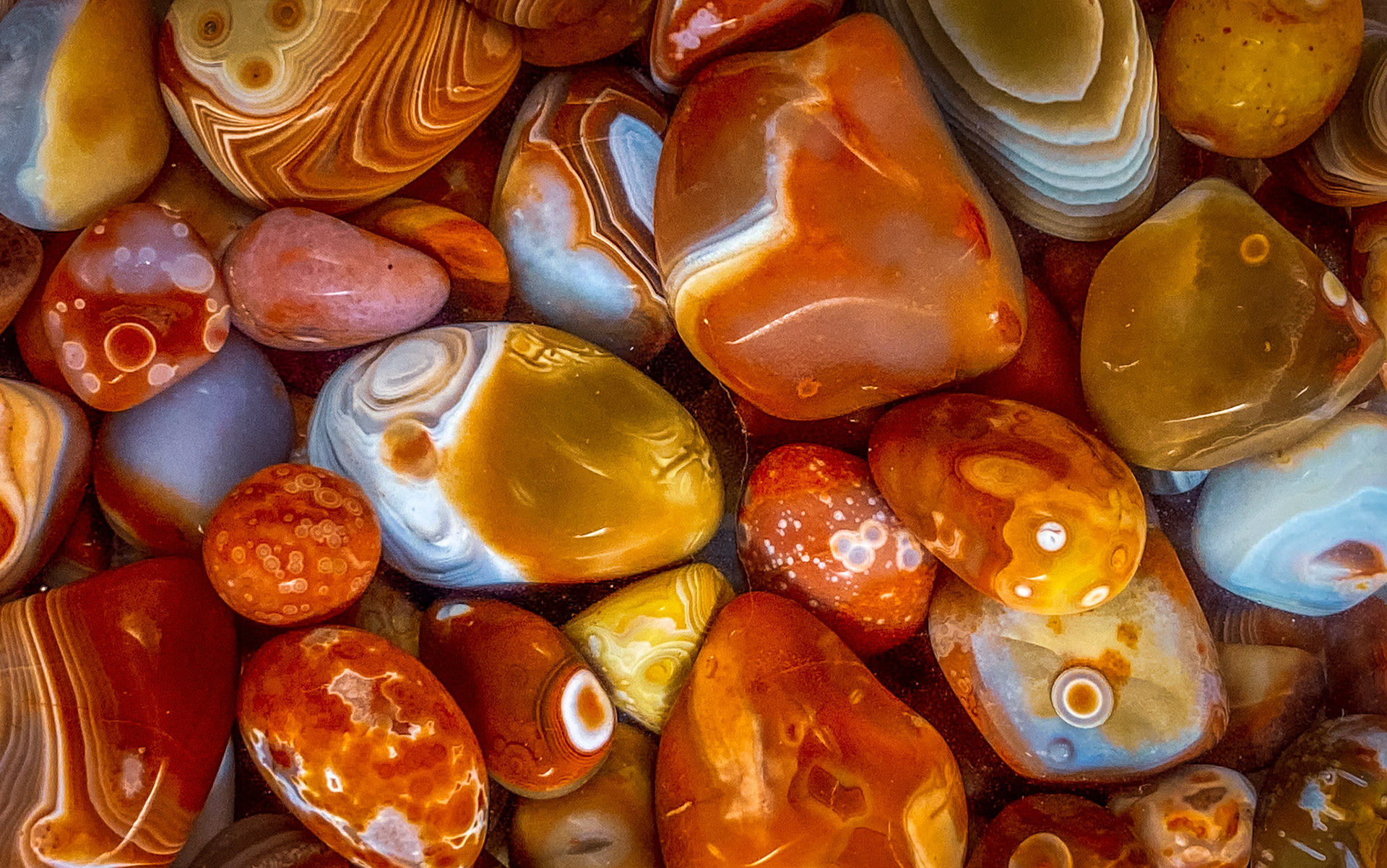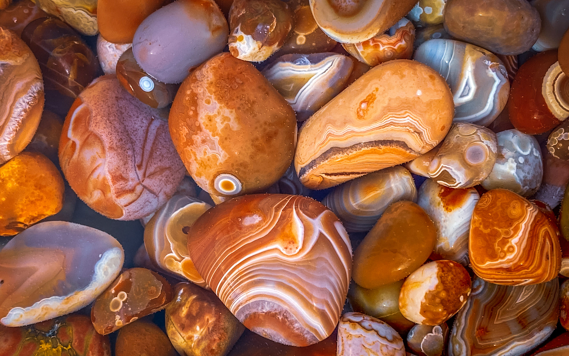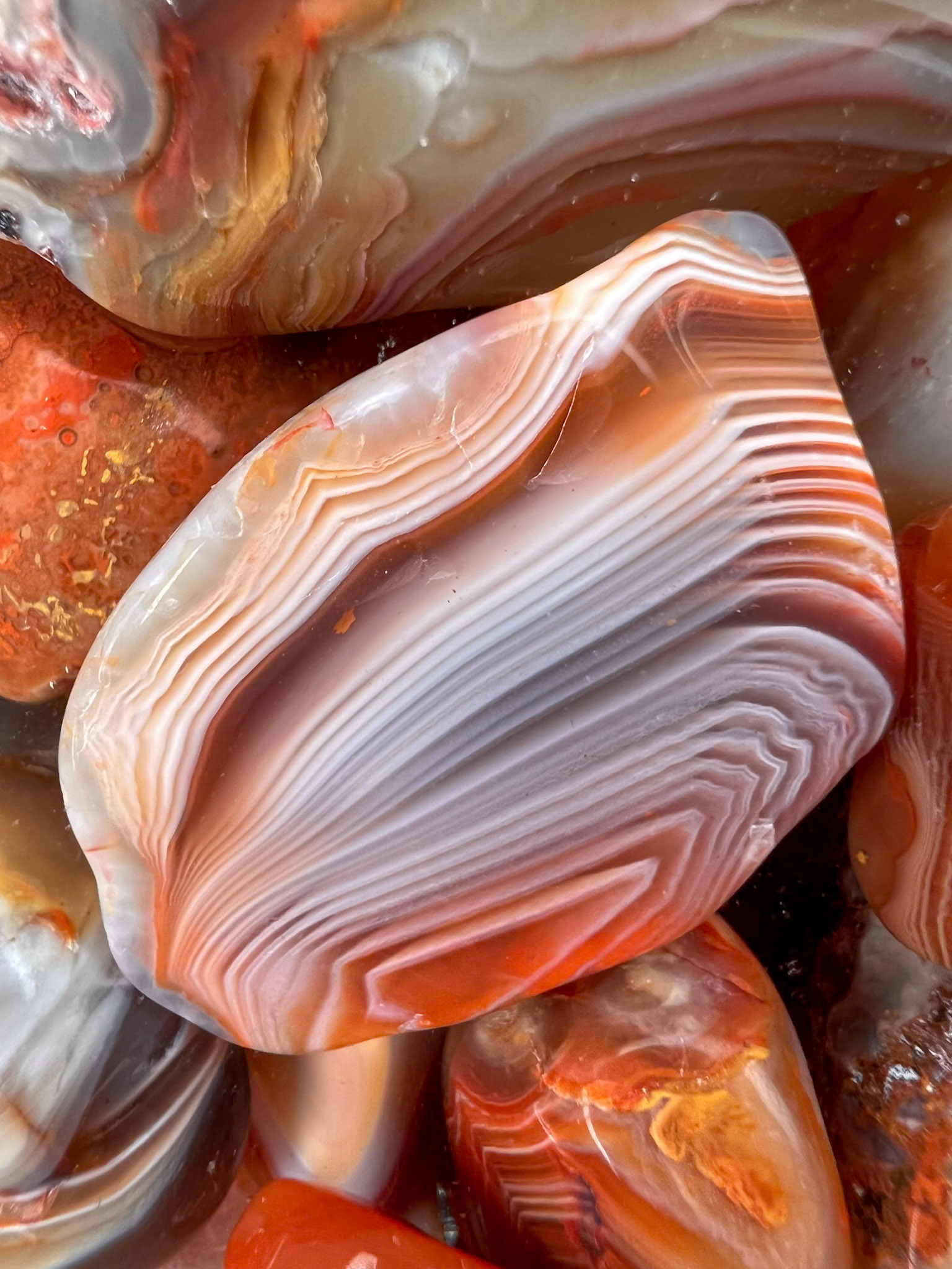 January 27 – Lake Superior Agates - Gems of the NorthThese polished Lake Superior agates began as rough, unremarkable stones before spending two months in a rock tumbler. Through the harsh, repetitive action of tumbling across progressively finer grits, their hidden beauty slowly revealed itself.Designated the Minnesota State Gemstone in 1969, Lake Superior agates are prized worldwide for their durability, color, and distinctive banding. Carried and scattered by ancient glaciers, these agates form with warm reds, oranges, and browns as iron minerals oxidize—an iron-rich chemistry that gives them their signature fire.When fully polished, agates develop a glassy, almost glowing surface that brings their internal bands to life. They are valued not only for how they appear in the wild, but for the beauty revealed through patience and refinement.“The foundations of the wall of the city were adorned with every kind of jewel. The first was jasper, the second sapphire, the third agate…” — Revelation 21:19Much like the agate, the hard tumbles of life have a way of revealing a beauty meant to endure.