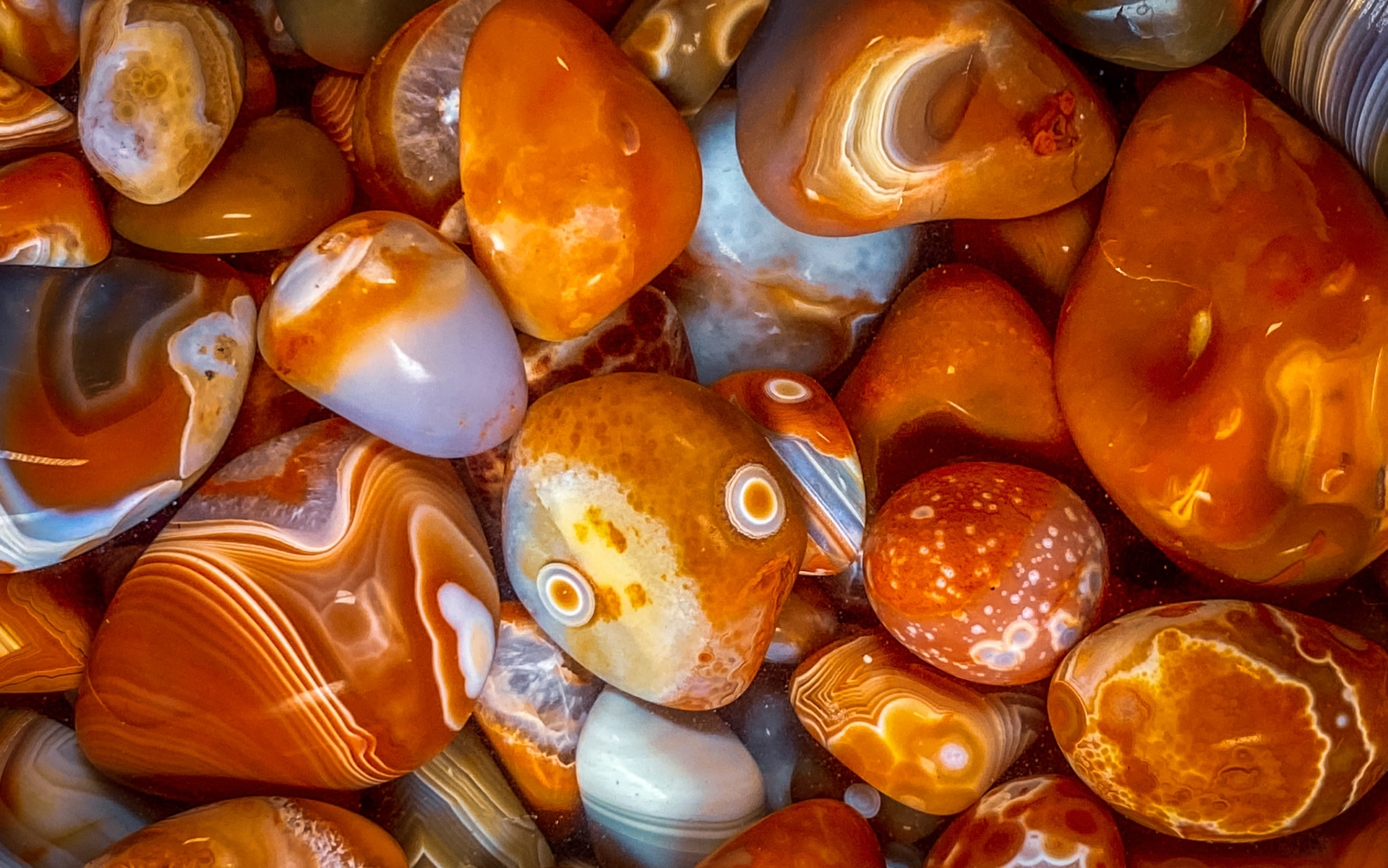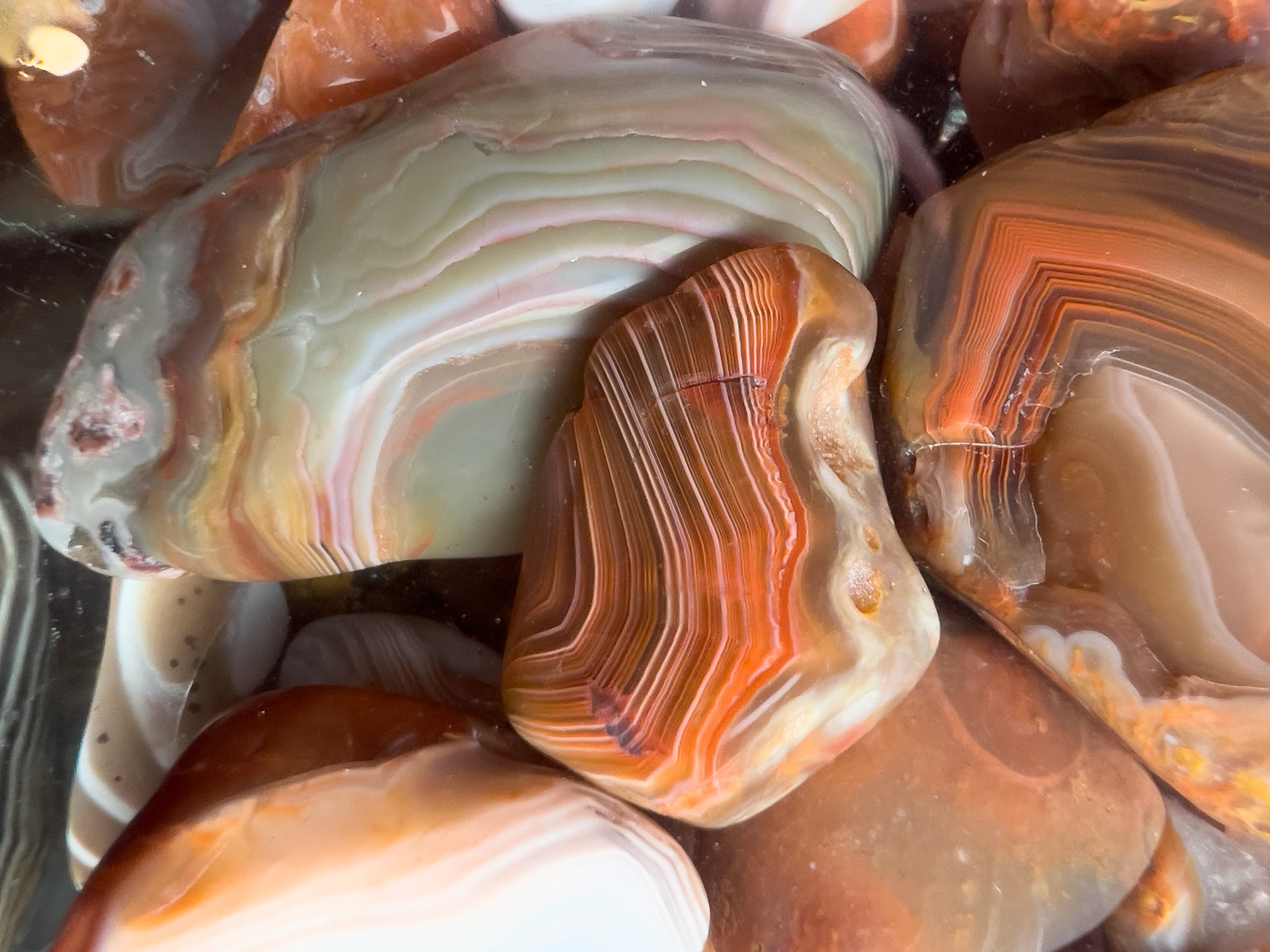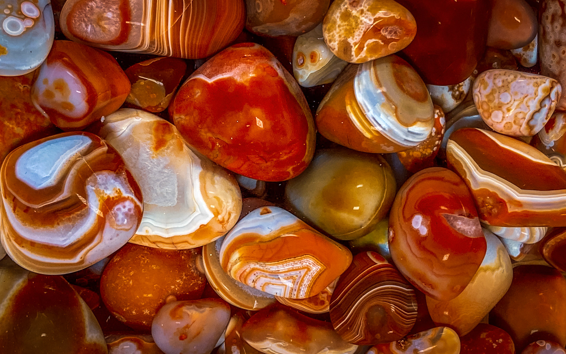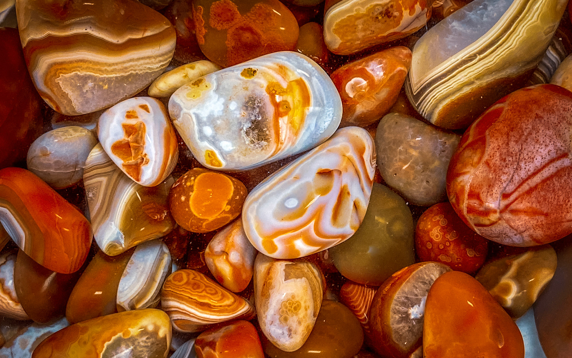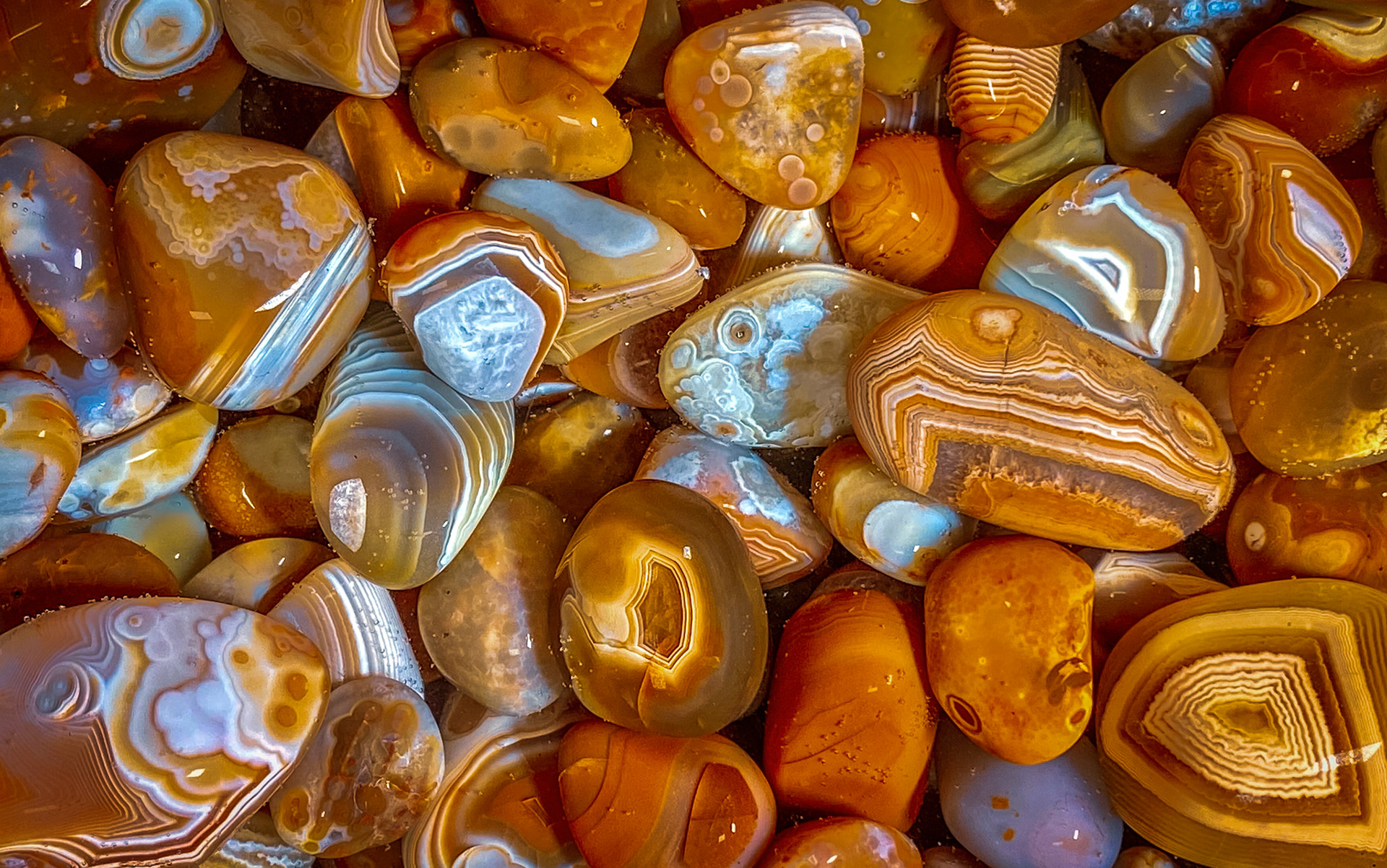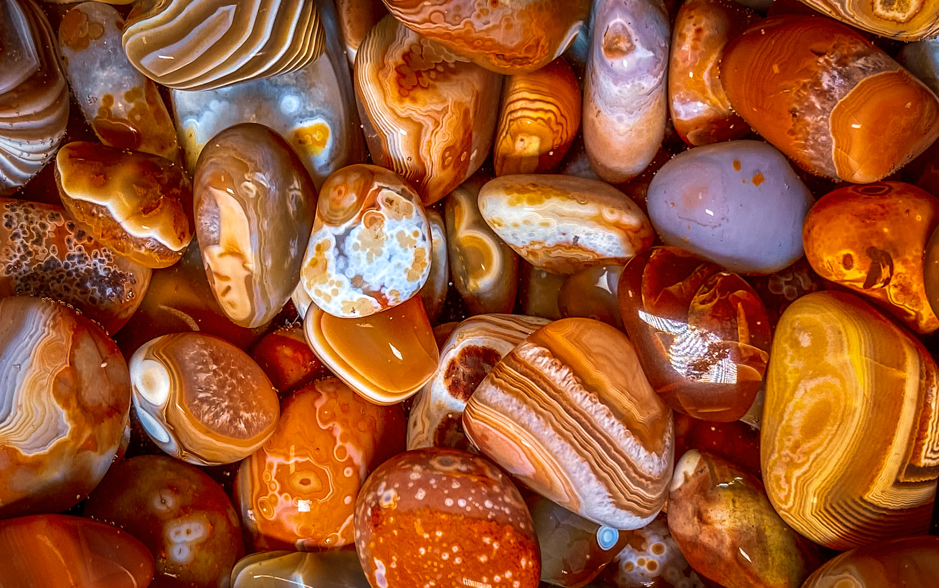 January 27 – Lake Superior Agates - Gems of the NorthThese polished Lake Superior agates began as rough, unremarkable stones before spending two months in a rock tumbler. Through the harsh, repetitive action of tumbling across progressively finer grits, their hidden beauty slowly revealed itself.Designated the Minnesota State Gemstone in 1969, Lake Superior agates are prized worldwide for their durability, color, and distinctive banding. Carried and scattered by ancient glaciers, these agates form with warm reds, oranges, and browns as iron minerals oxidize—an iron-rich chemistry that gives them their signature fire.When fully polished, agates develop a glassy, almost glowing surface that brings their internal bands to life. They are valued not only for how they appear in the wild, but for the beauty revealed through patience and refinement.“The foundations of the wall of the city were adorned with every kind of jewel. The first was jasper, the second sapphire, the third agate…” — Revelation 21:19Much like the agate, the hard tumbles of life have a way of revealing a beauty meant to endure.