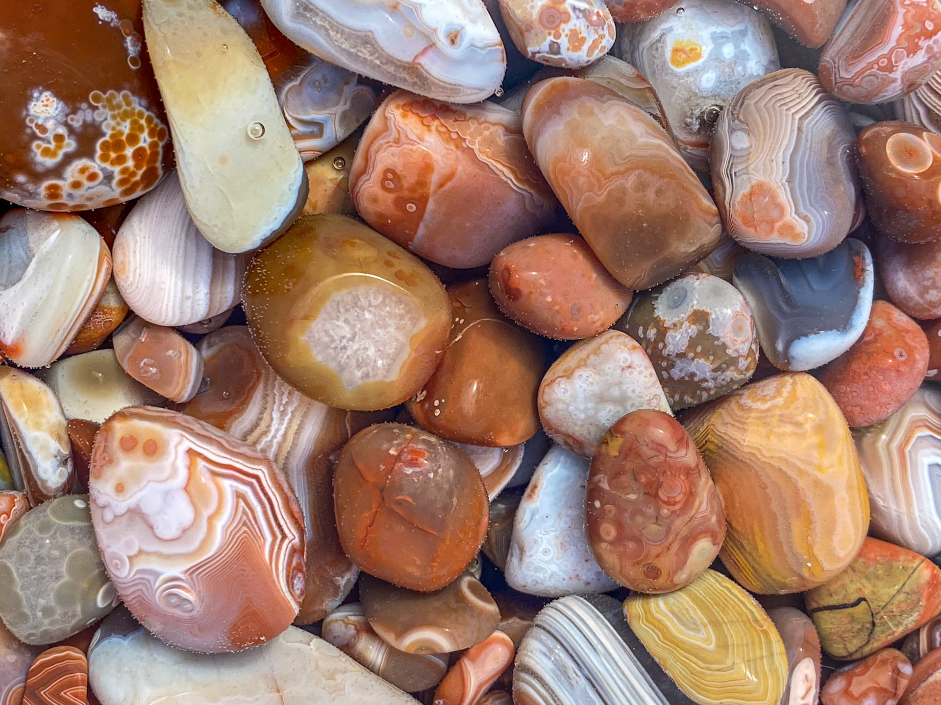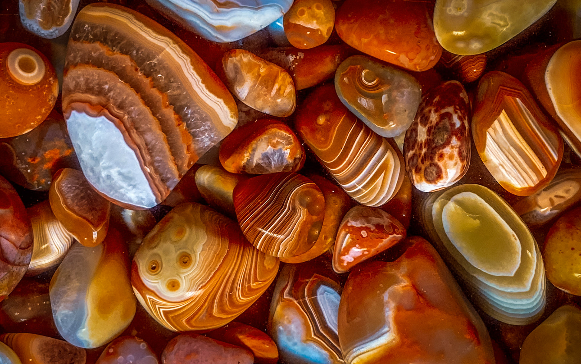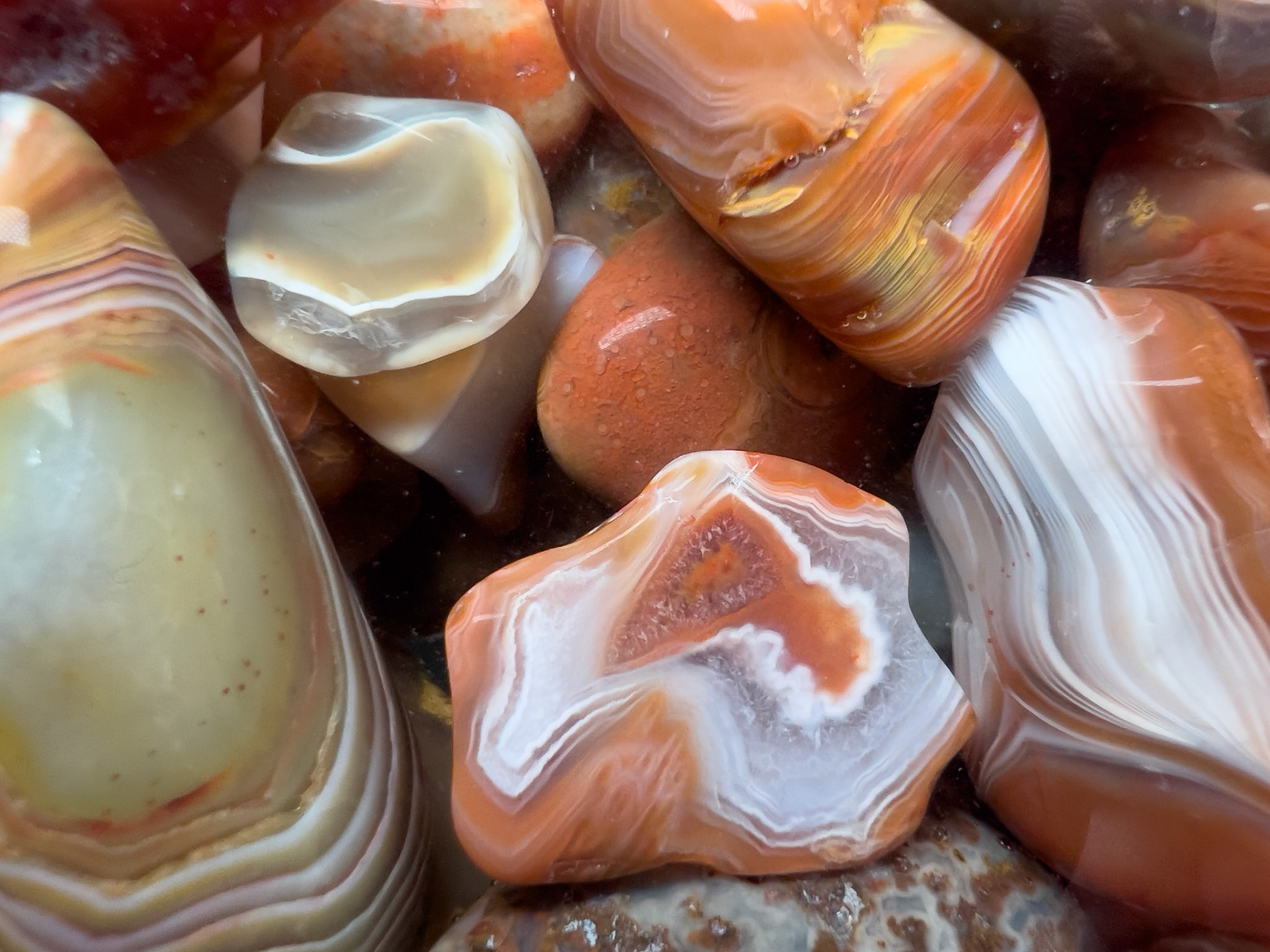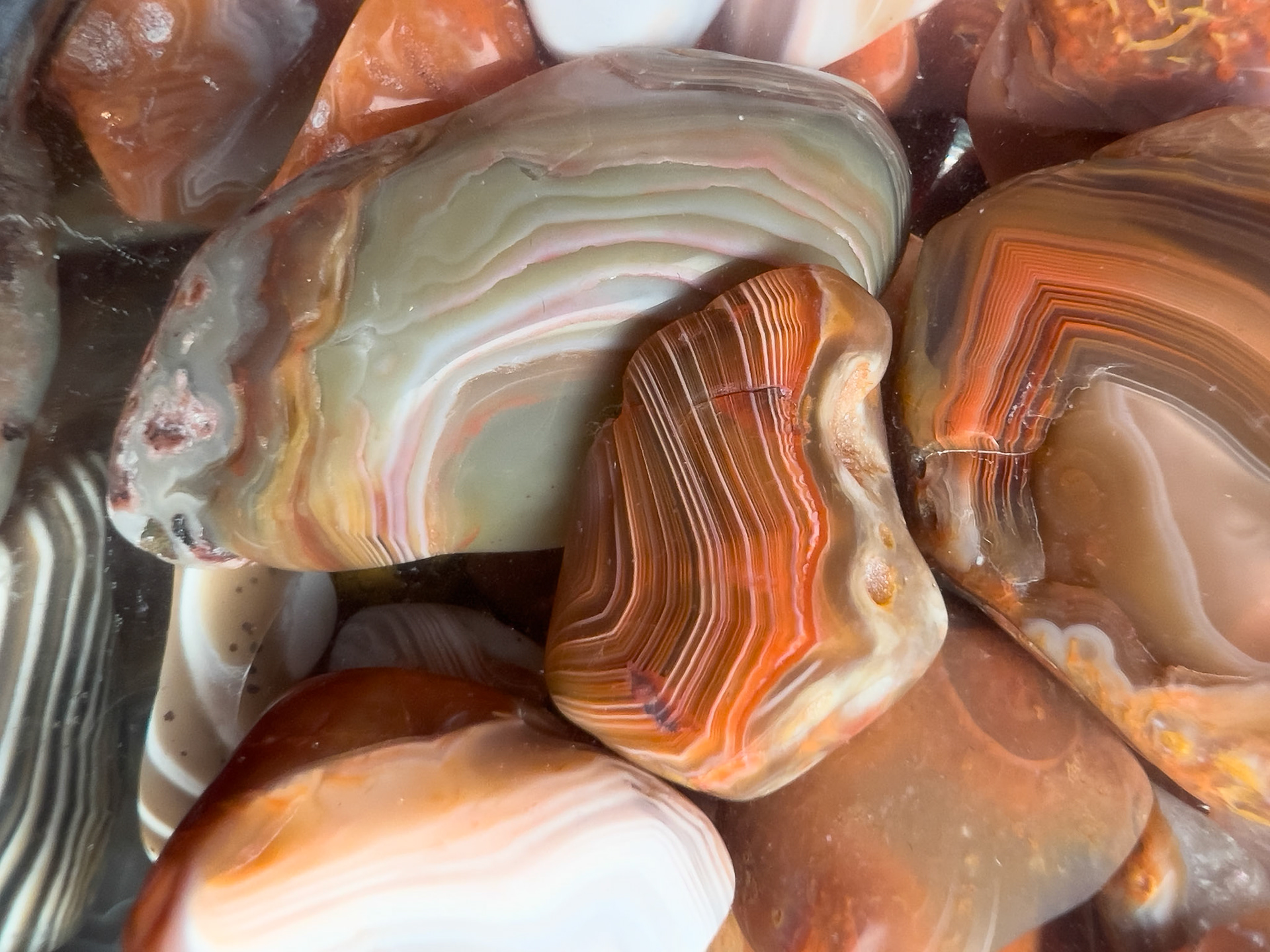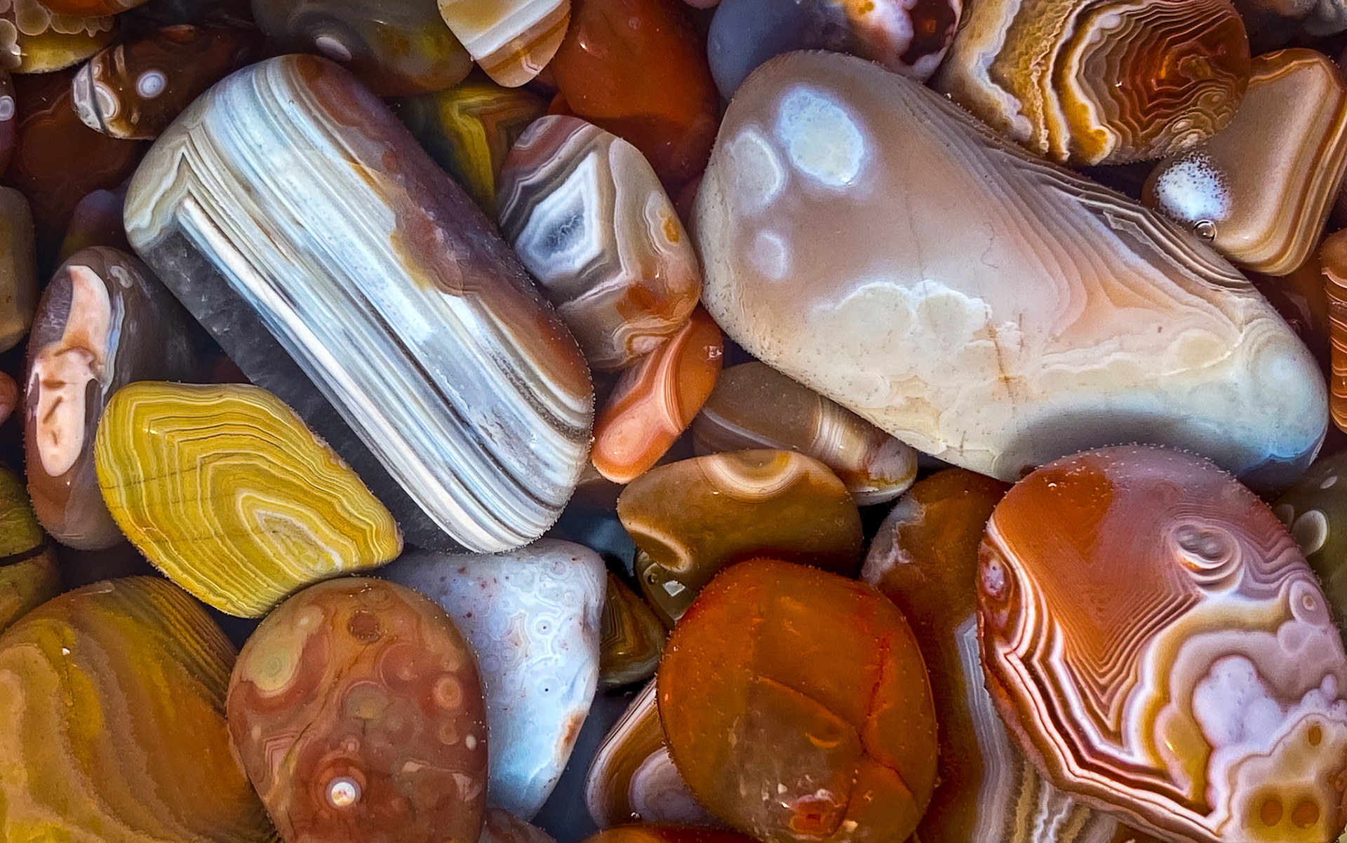 January 27 – Lake Superior Agates - Gems of the NorthThese polished Lake Superior agates began as rough, unremarkable stones before spending two months in a rock tumbler. Through the harsh, repetitive action of tumbling across progressively finer grits, their hidden beauty slowly revealed itself.Designated the Minnesota State Gemstone in 1969, Lake Superior agates are prized worldwide for their durability, color, and distinctive banding. Carried and scattered by ancient glaciers, these agates form with warm reds, oranges, and browns as iron minerals oxidize—an iron-rich chemistry that gives them their signature fire.When fully polished, agates develop a glassy, almost glowing surface that brings their internal bands to life. They are valued not only for how they appear in the wild, but for the beauty revealed through patience and refinement.“The foundations of the wall of the city were adorned with every kind of jewel. The first was jasper, the second sapphire, the third agate…” — Revelation 21:19Much like the agate, the hard tumbles of life have a way of revealing a beauty meant to endure.