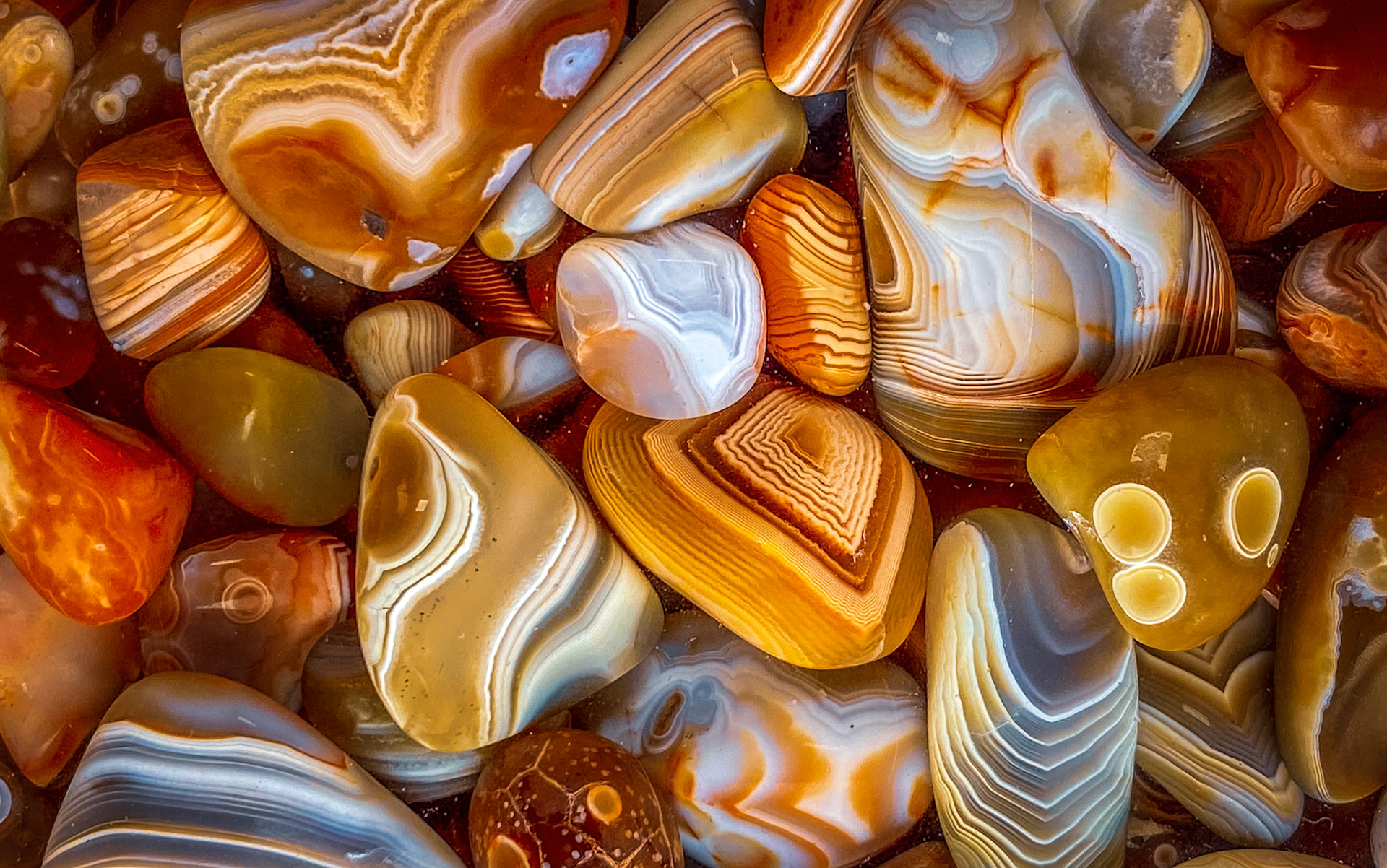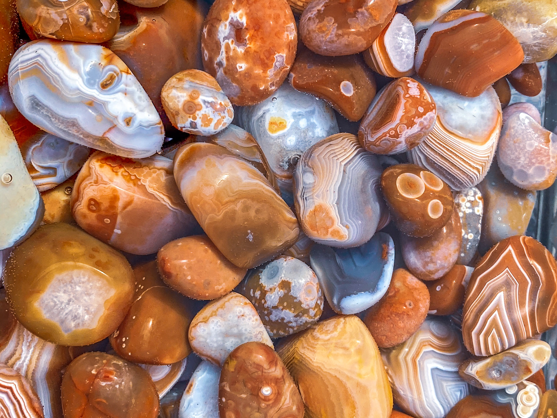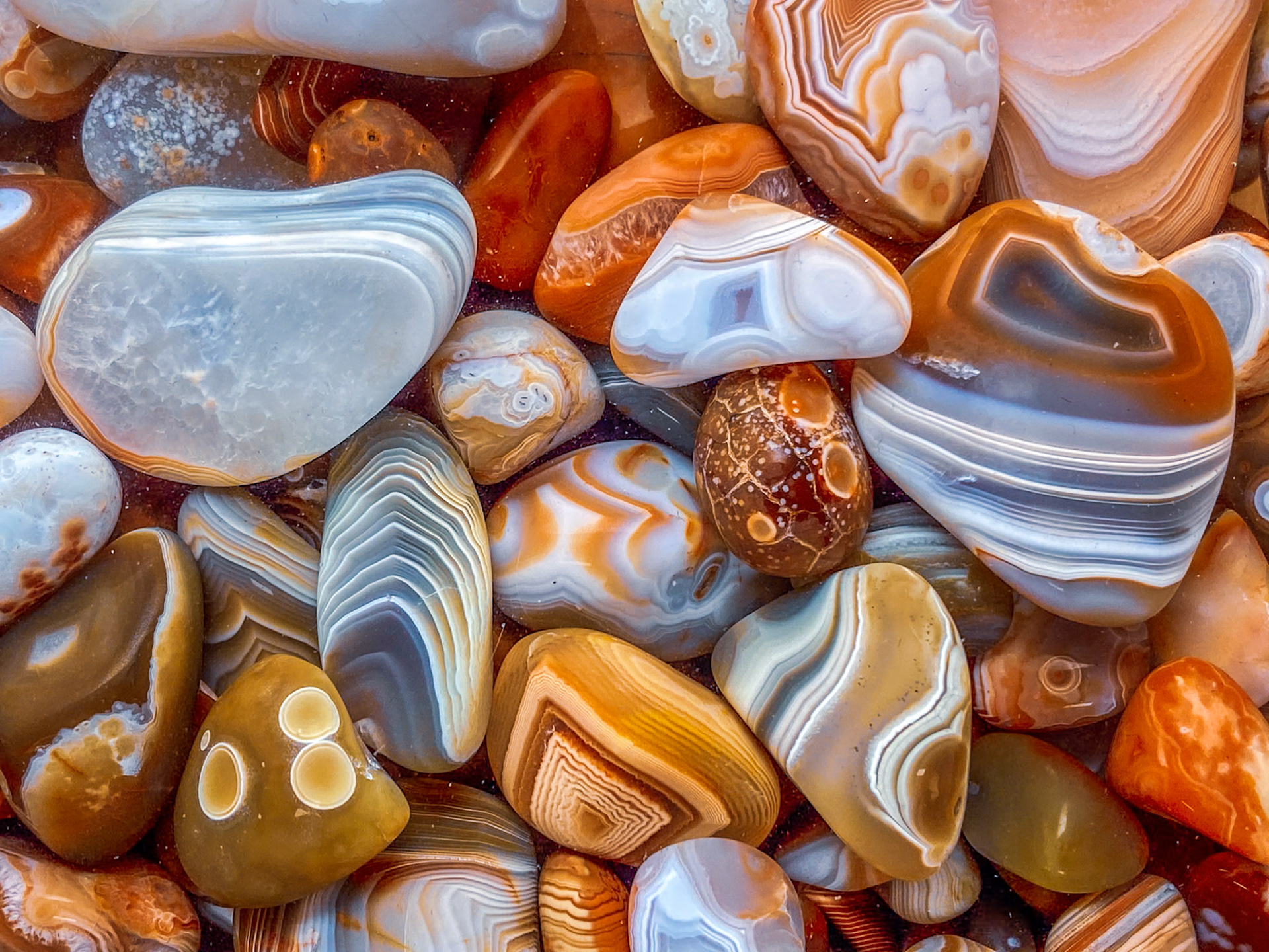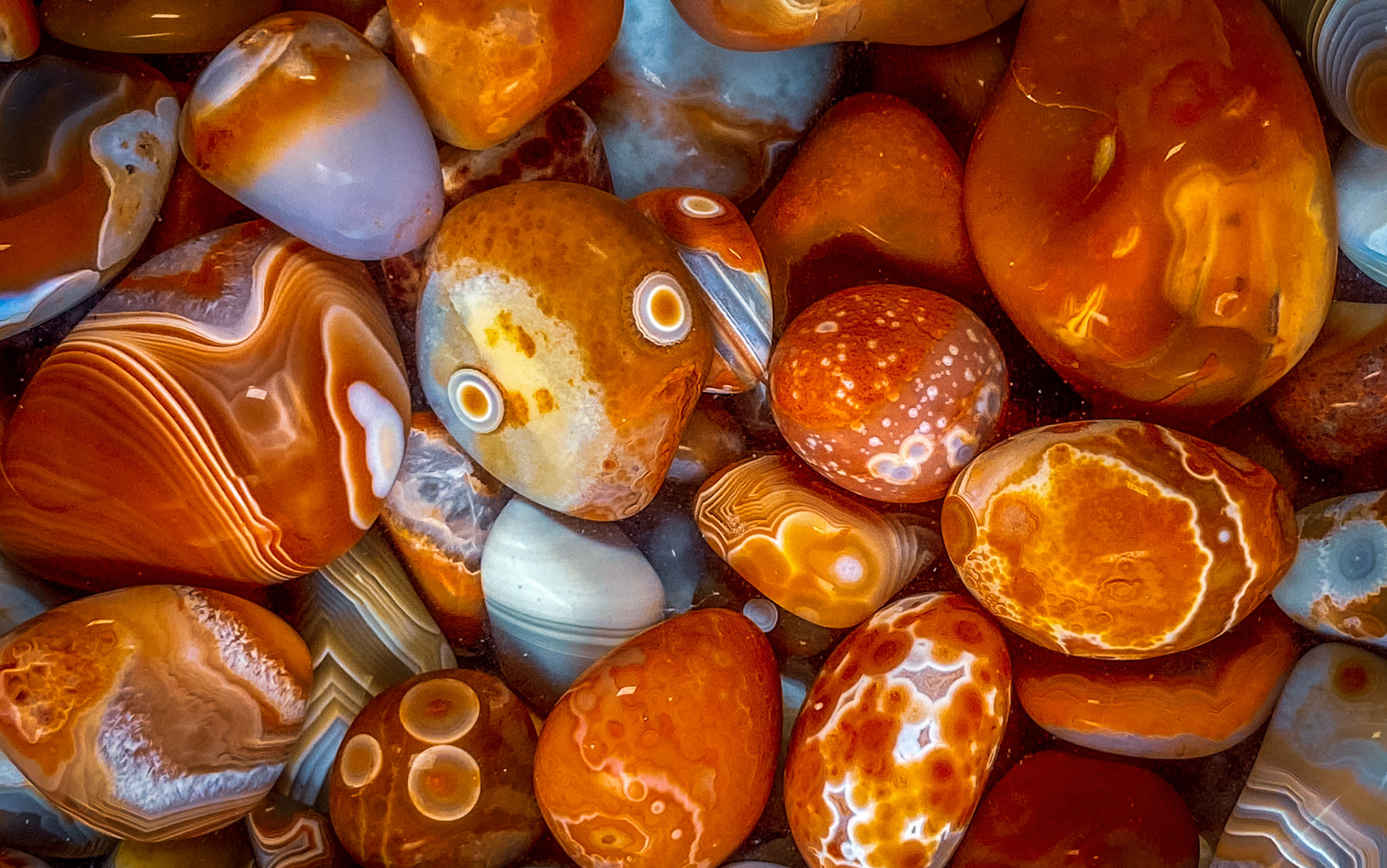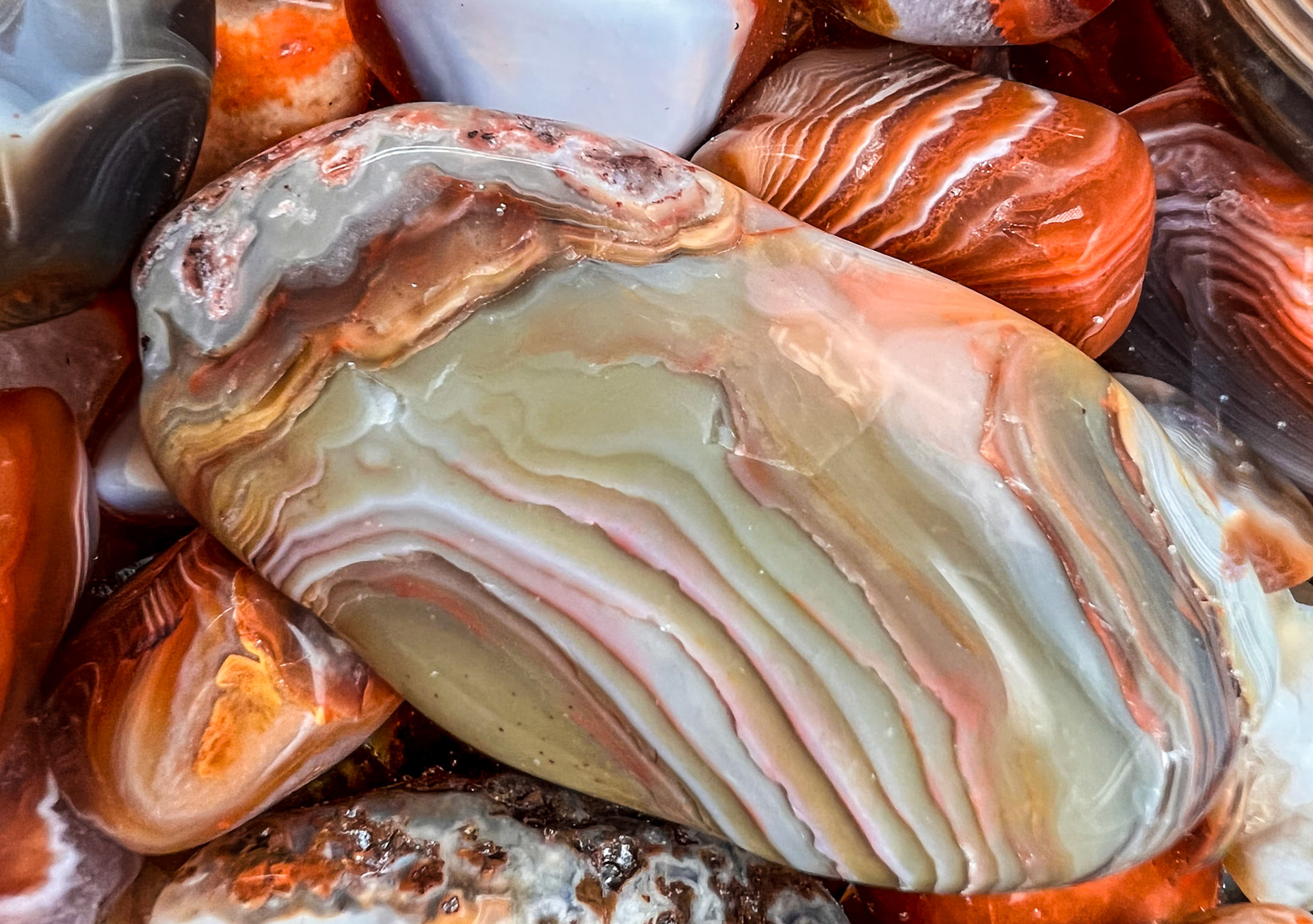 January 27 – Lake Superior Agates - Gems of the NorthThese polished Lake Superior agates began as rough, unremarkable stones before spending two months in a rock tumbler. Through the harsh, repetitive action of tumbling across progressively finer grits, their hidden beauty slowly revealed itself.Designated the Minnesota State Gemstone in 1969, Lake Superior agates are prized worldwide for their durability, color, and distinctive banding. Carried and scattered by ancient glaciers, these agates form with warm reds, oranges, and browns as iron minerals oxidize—an iron-rich chemistry that gives them their signature fire.When fully polished, agates develop a glassy, almost glowing surface that brings their internal bands to life. They are valued not only for how they appear in the wild, but for the beauty revealed through patience and refinement.“The foundations of the wall of the city were adorned with every kind of jewel. The first was jasper, the second sapphire, the third agate…” — Revelation 21:19Much like the agate, the hard tumbles of life have a way of revealing a beauty meant to endure.