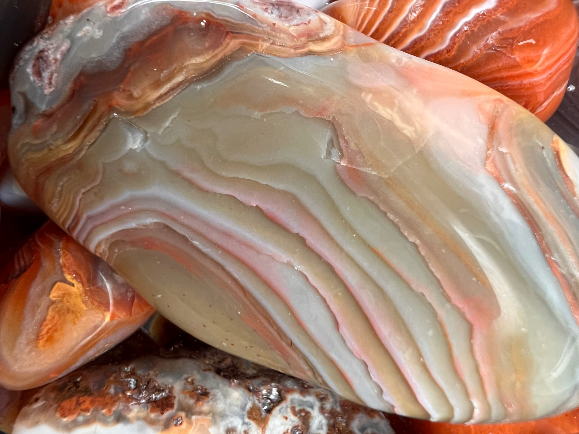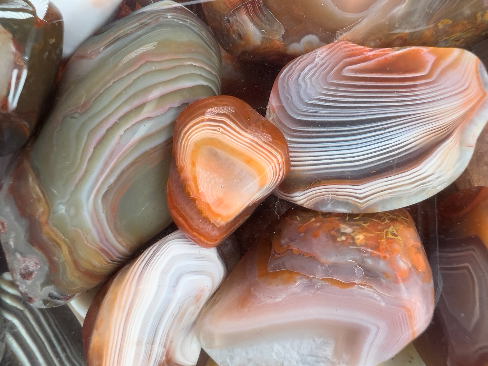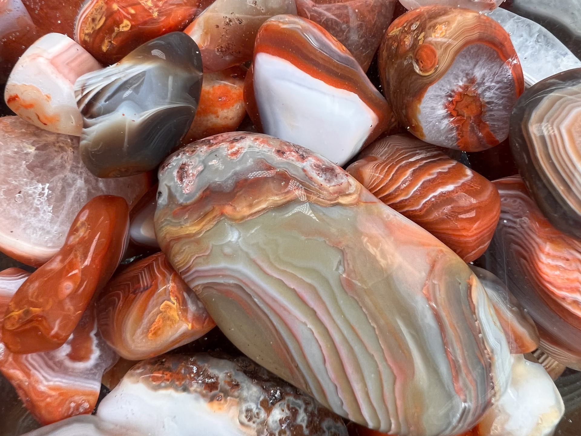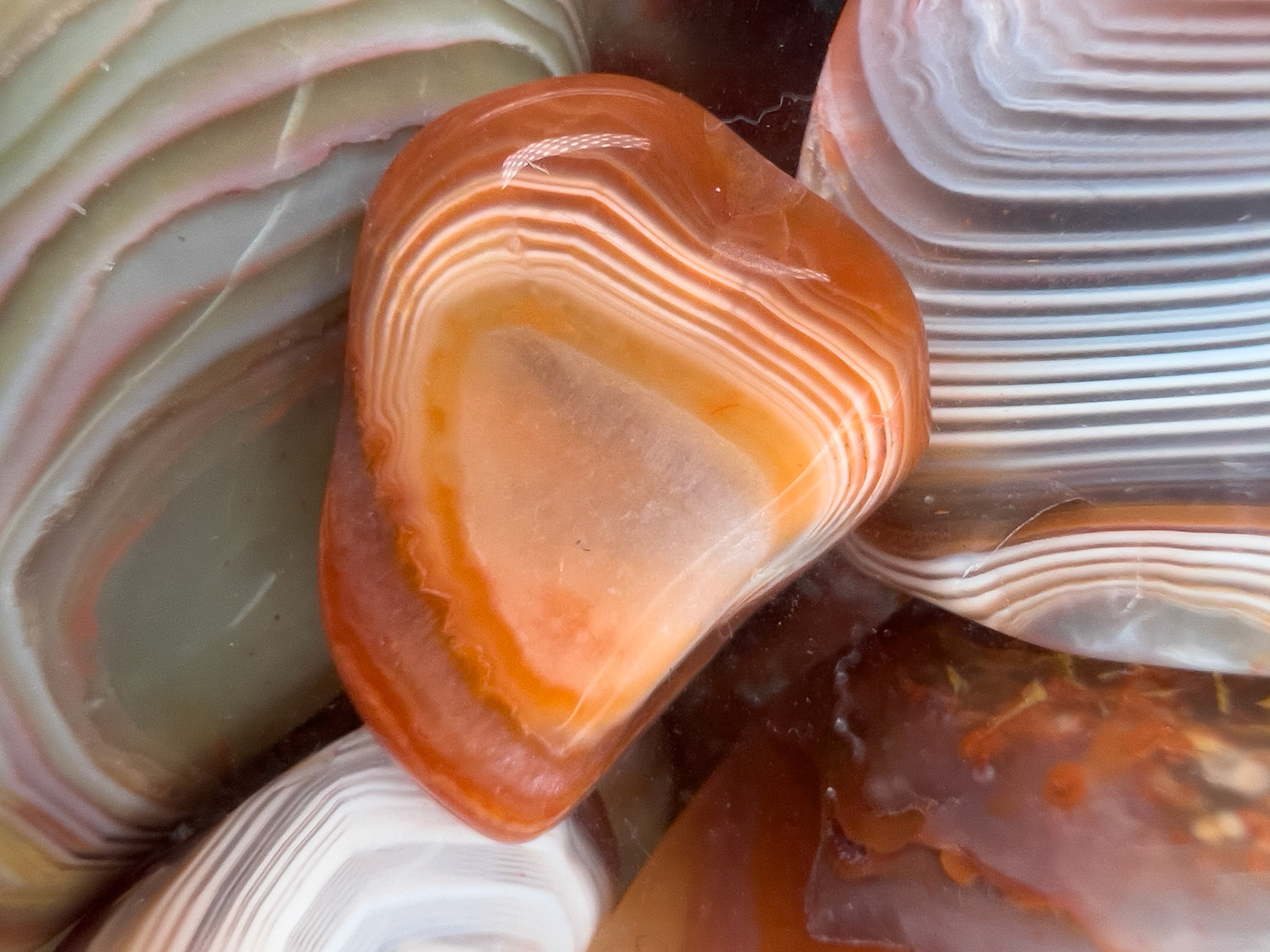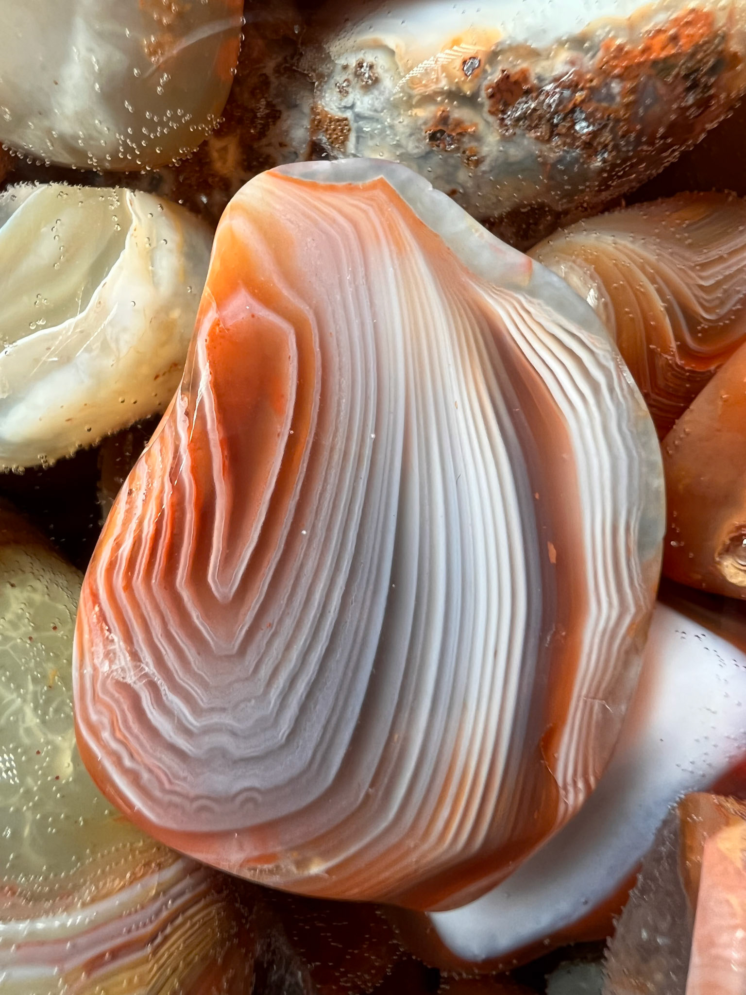 January 27 – Lake Superior Agates - Gems of the NorthThese polished Lake Superior agates began as rough, unremarkable stones before spending two months in a rock tumbler. Through the harsh, repetitive action of tumbling across progressively finer grits, their hidden beauty slowly revealed itself.Designated the Minnesota State Gemstone in 1969, Lake Superior agates are prized worldwide for their durability, color, and distinctive banding. Carried and scattered by ancient glaciers, these agates form with warm reds, oranges, and browns as iron minerals oxidize—an iron-rich chemistry that gives them their signature fire.When fully polished, agates develop a glassy, almost glowing surface that brings their internal bands to life. They are valued not only for how they appear in the wild, but for the beauty revealed through patience and refinement.“The foundations of the wall of the city were adorned with every kind of jewel. The first was jasper, the second sapphire, the third agate…” — Revelation 21:19Much like the agate, the hard tumbles of life have a way of revealing a beauty meant to endure.