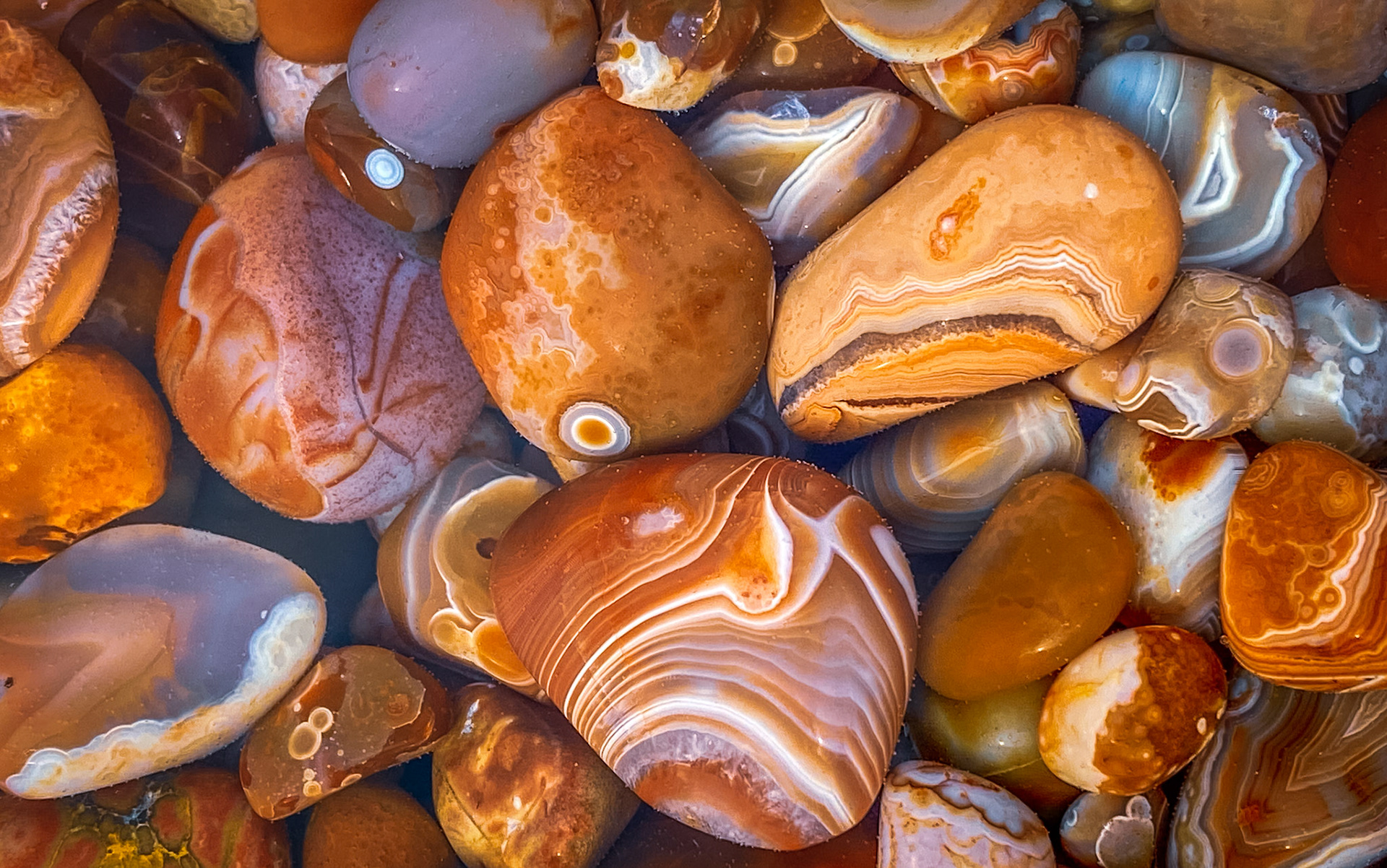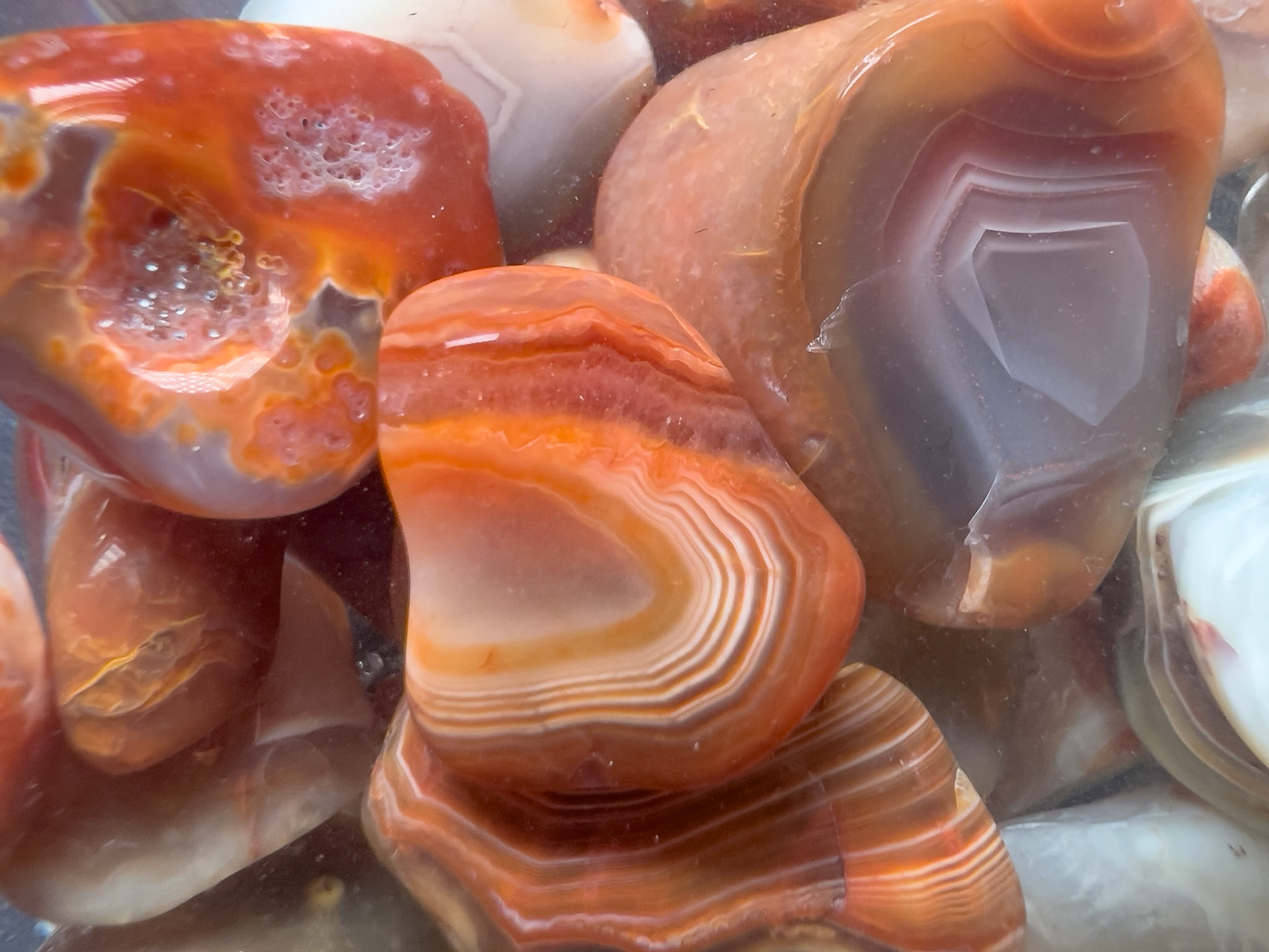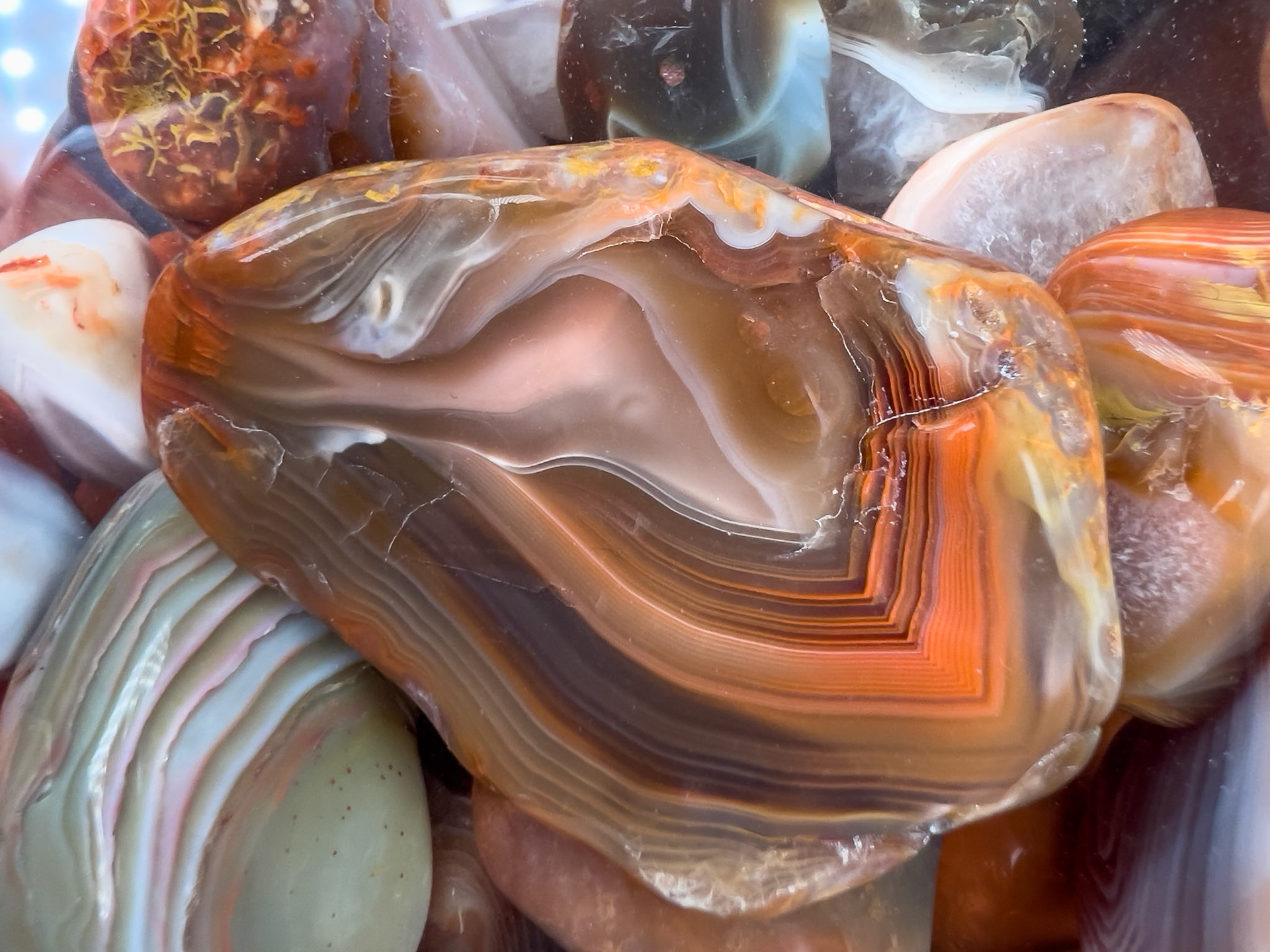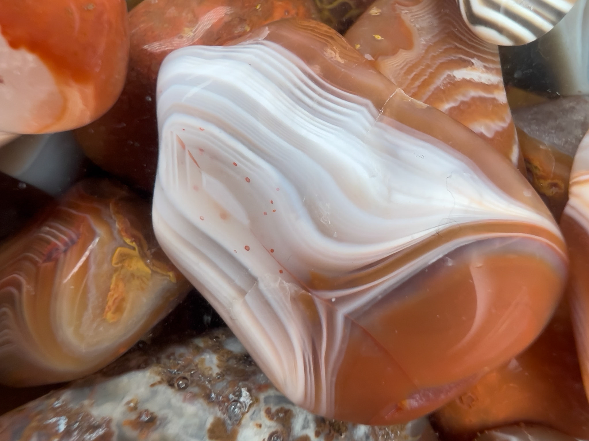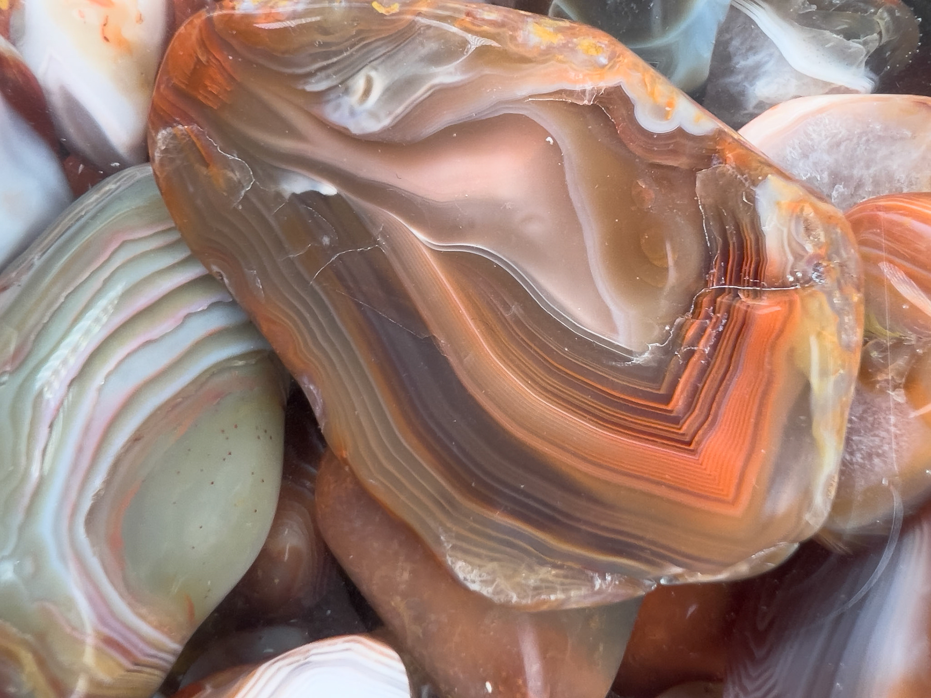 January 27 – Lake Superior Agates - Gems of the NorthThese polished Lake Superior agates began as rough, unremarkable stones before spending two months in a rock tumbler. Through the harsh, repetitive action of tumbling across progressively finer grits, their hidden beauty slowly revealed itself.Designated the Minnesota State Gemstone in 1969, Lake Superior agates are prized worldwide for their durability, color, and distinctive banding. Carried and scattered by ancient glaciers, these agates form with warm reds, oranges, and browns as iron minerals oxidize—an iron-rich chemistry that gives them their signature fire.When fully polished, agates develop a glassy, almost glowing surface that brings their internal bands to life. They are valued not only for how they appear in the wild, but for the beauty revealed through patience and refinement.“The foundations of the wall of the city were adorned with every kind of jewel. The first was jasper, the second sapphire, the third agate…” — Revelation 21:19Much like the agate, the hard tumbles of life have a way of revealing a beauty meant to endure.