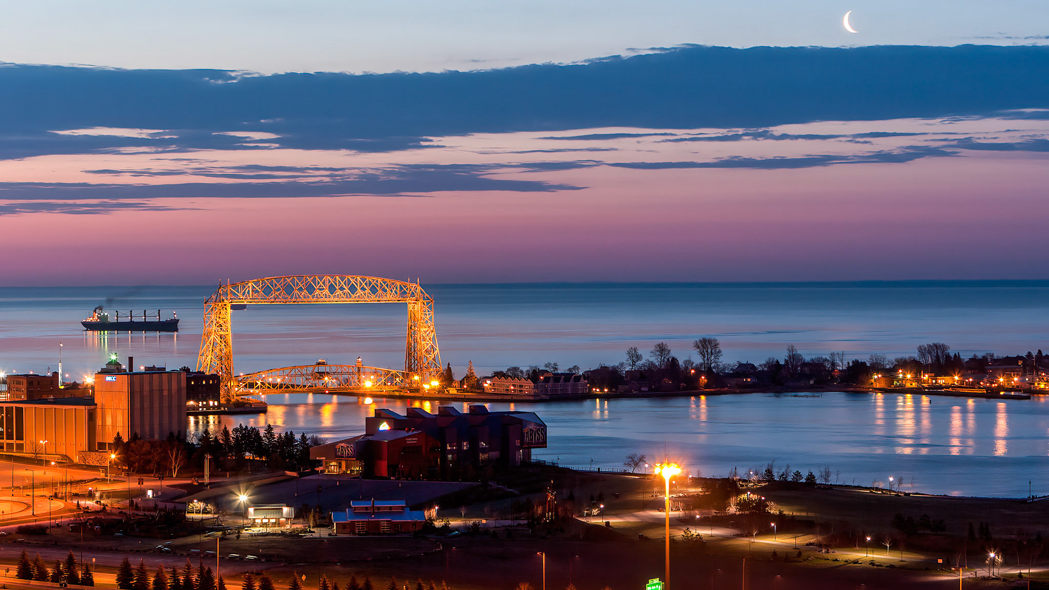 An ocean freighter wailts at anchore outside the Duluth Harbor for it's turn to load grain.