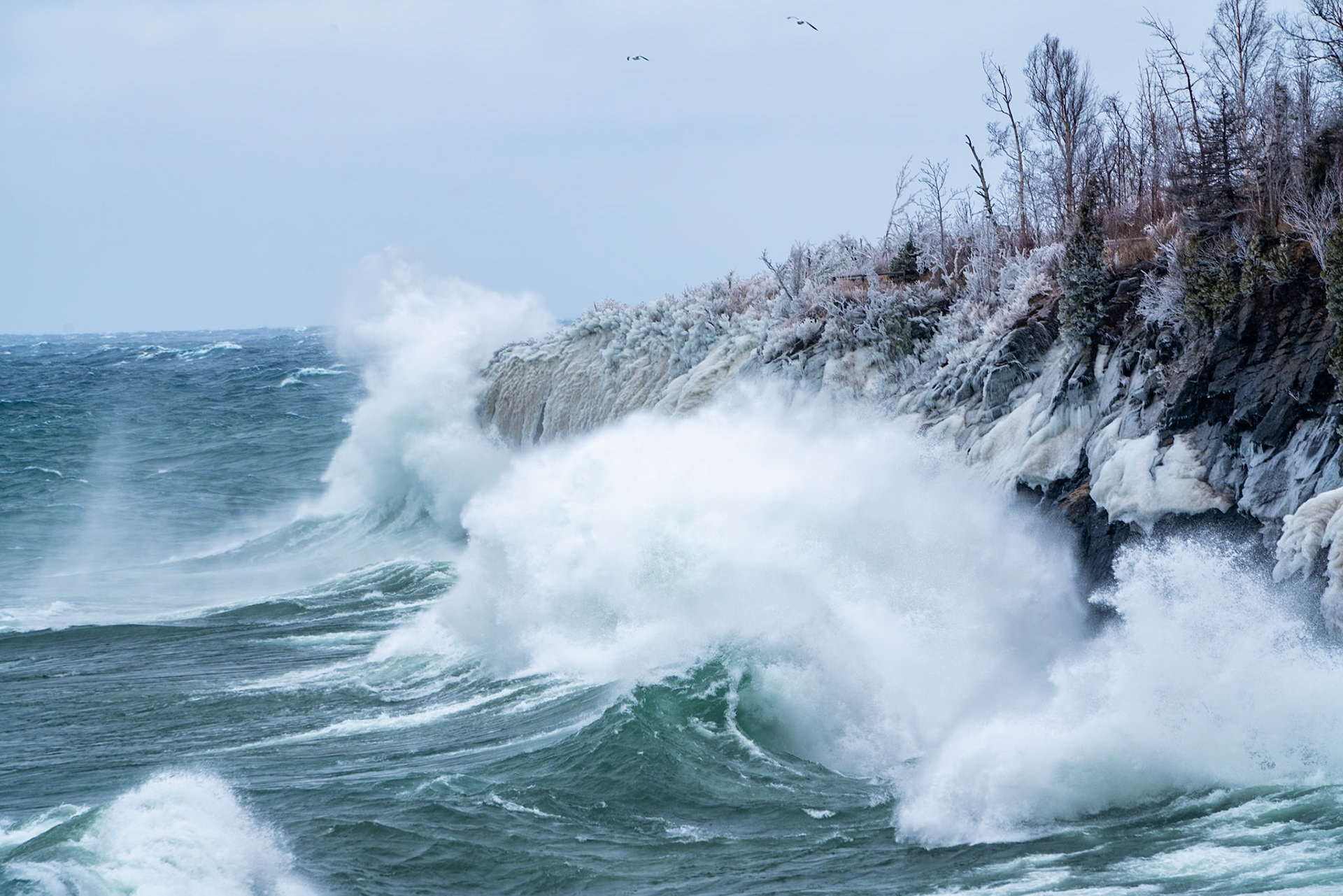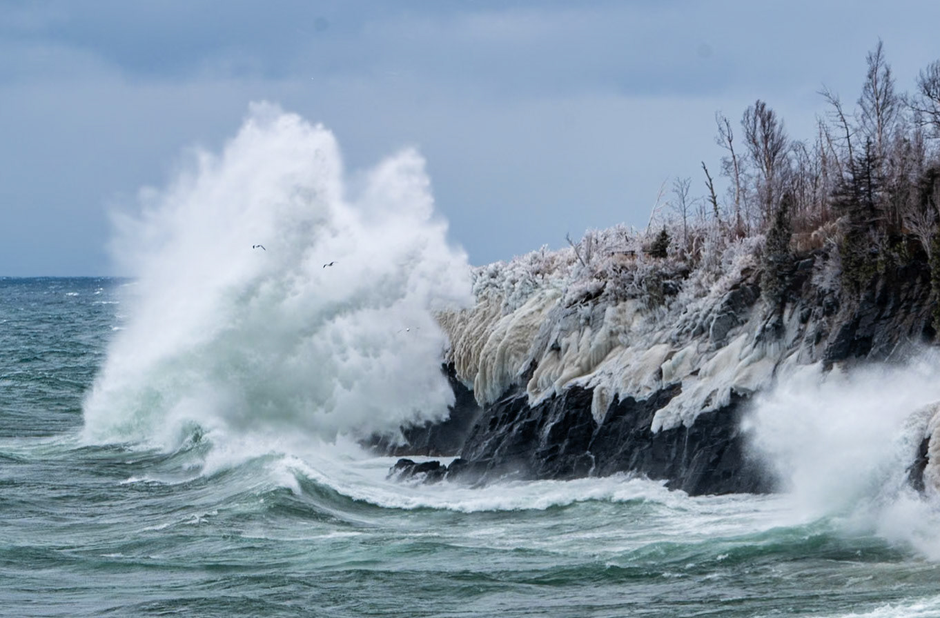 Duluth Lighthouses stand up to gale force winds.